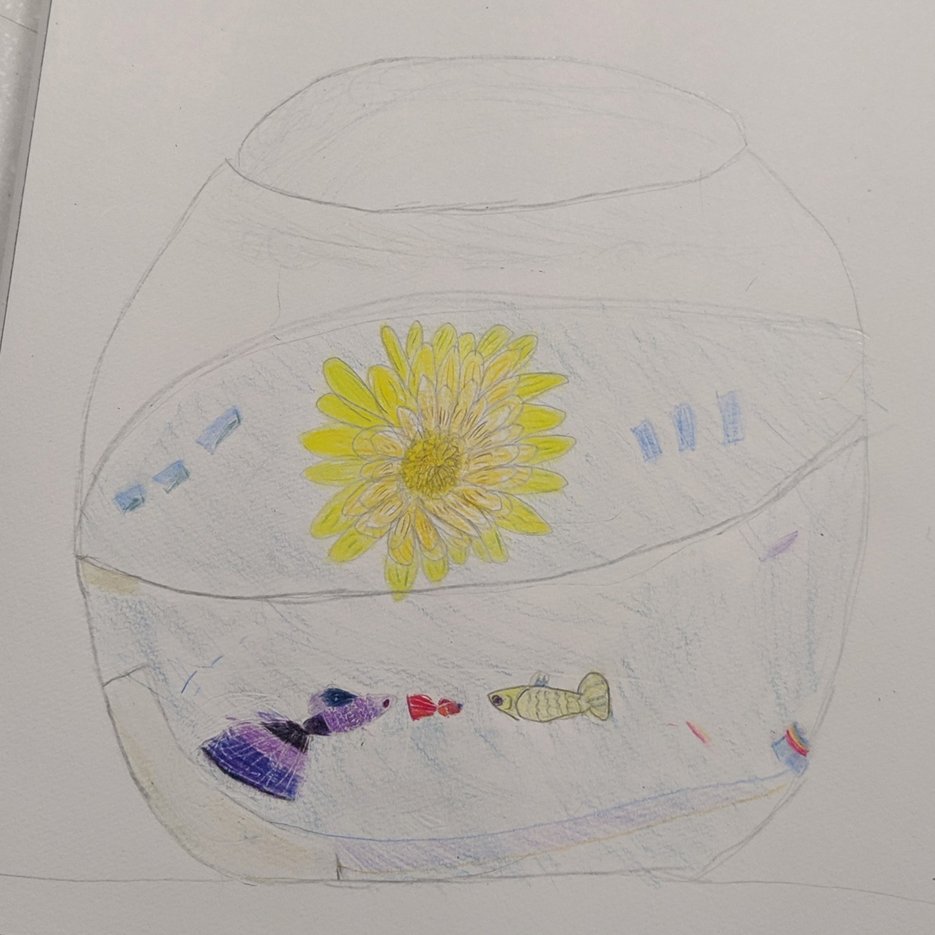 描いていくうちに「魚の家族が居たら素敵」ということで、グッピーの写真を観察して足しました(^^)