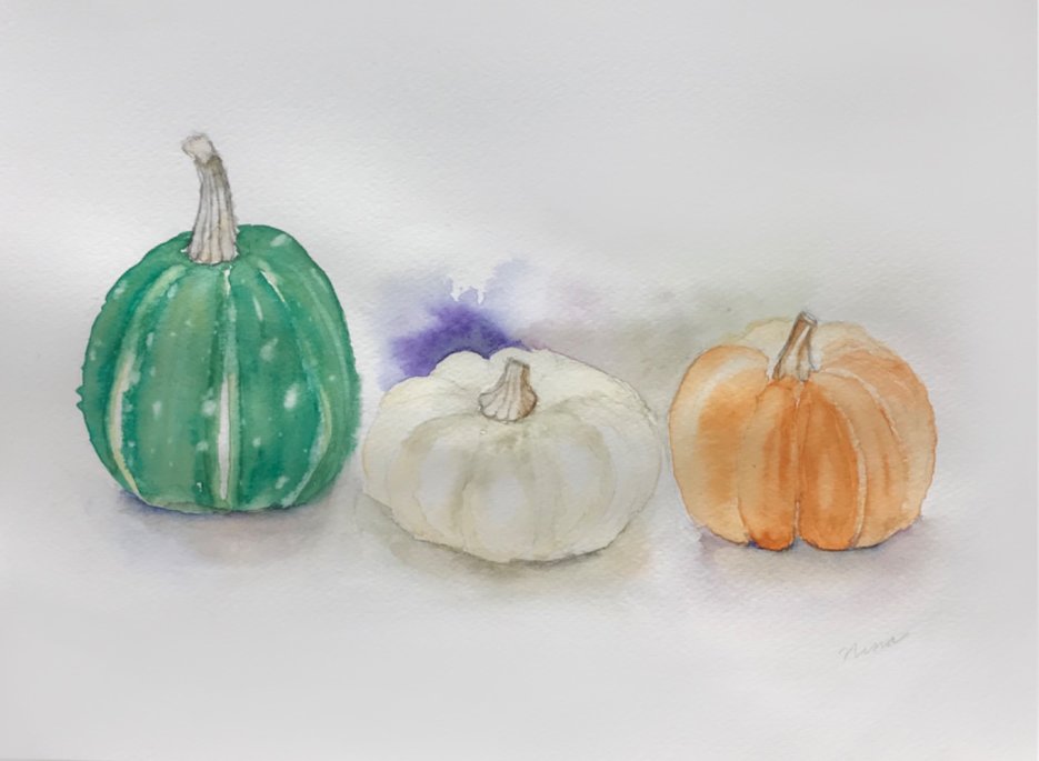 きちんとカボチャを見ながら制作しましたので、優しい表現の中にも、どこかリアルな観察が感じられます。