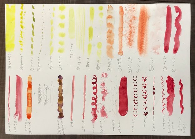 これは絵の具のいろいろな描き方を考えて、全て異なる筆法になっているオリジナルの技法書です^^
