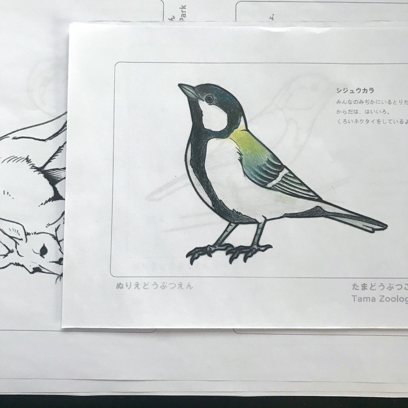 シジュウカラ、ってどんな色?? と調べながら塗ってみました。