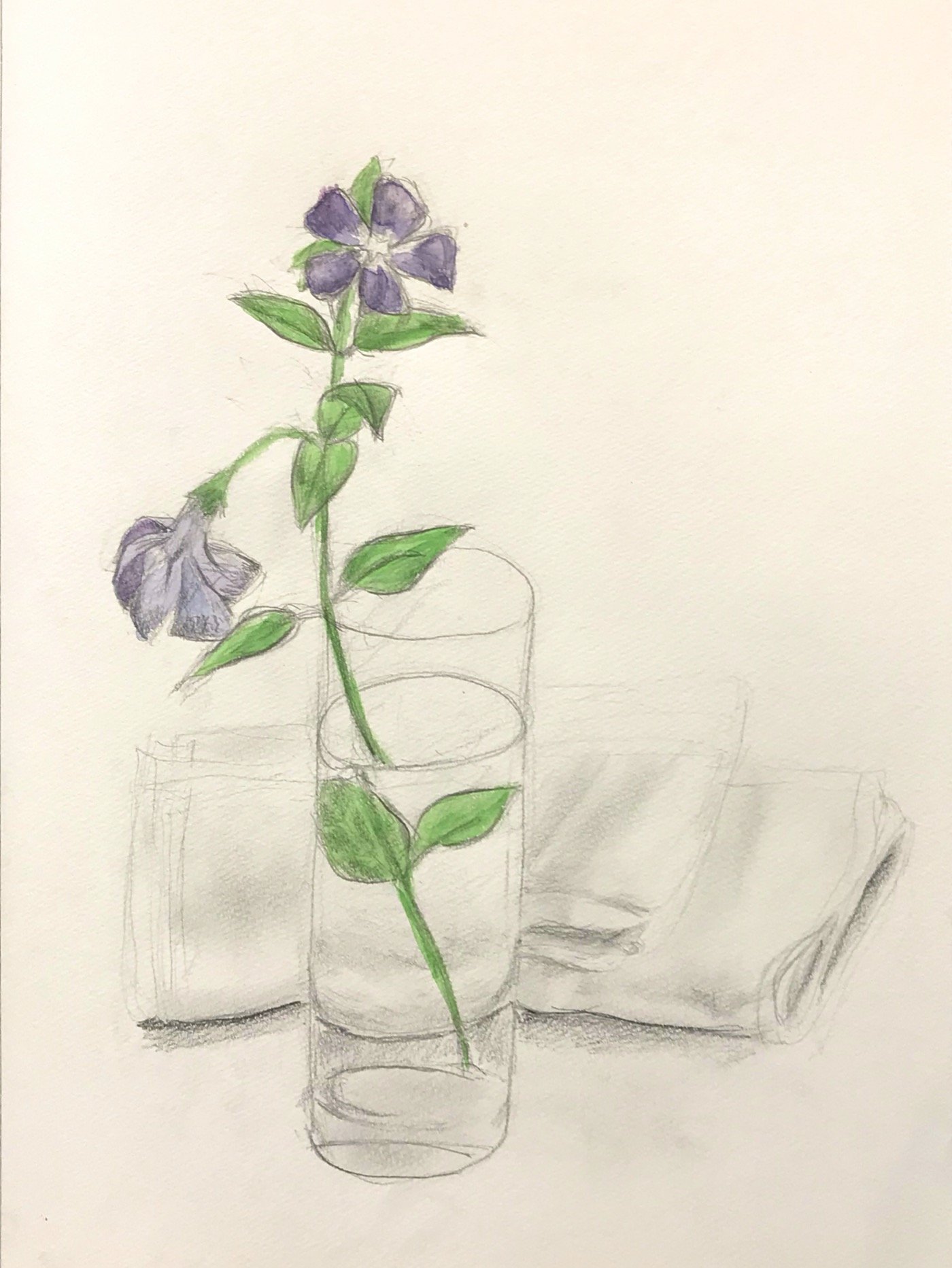 鉛筆デッサンに、花だけ透明水彩で仕上げてもらいました。