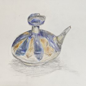 きれいなグリーンを表現しようとするあまり瓶の形態感が弱くなってしまうなど、さまざまな点に気をおいていかないと難しいモチーフだと思います。