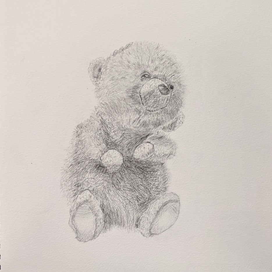 毛並みがフサフサしたぬいぐるみ(実物)を描きました。