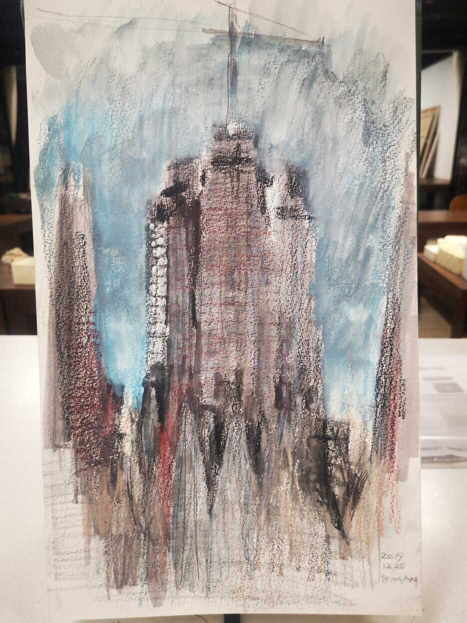 Ayre Hotel Rosellónというホテル(サグラダ・ファミリアビューの部屋がおすすめです)の部屋から何枚も描きました。