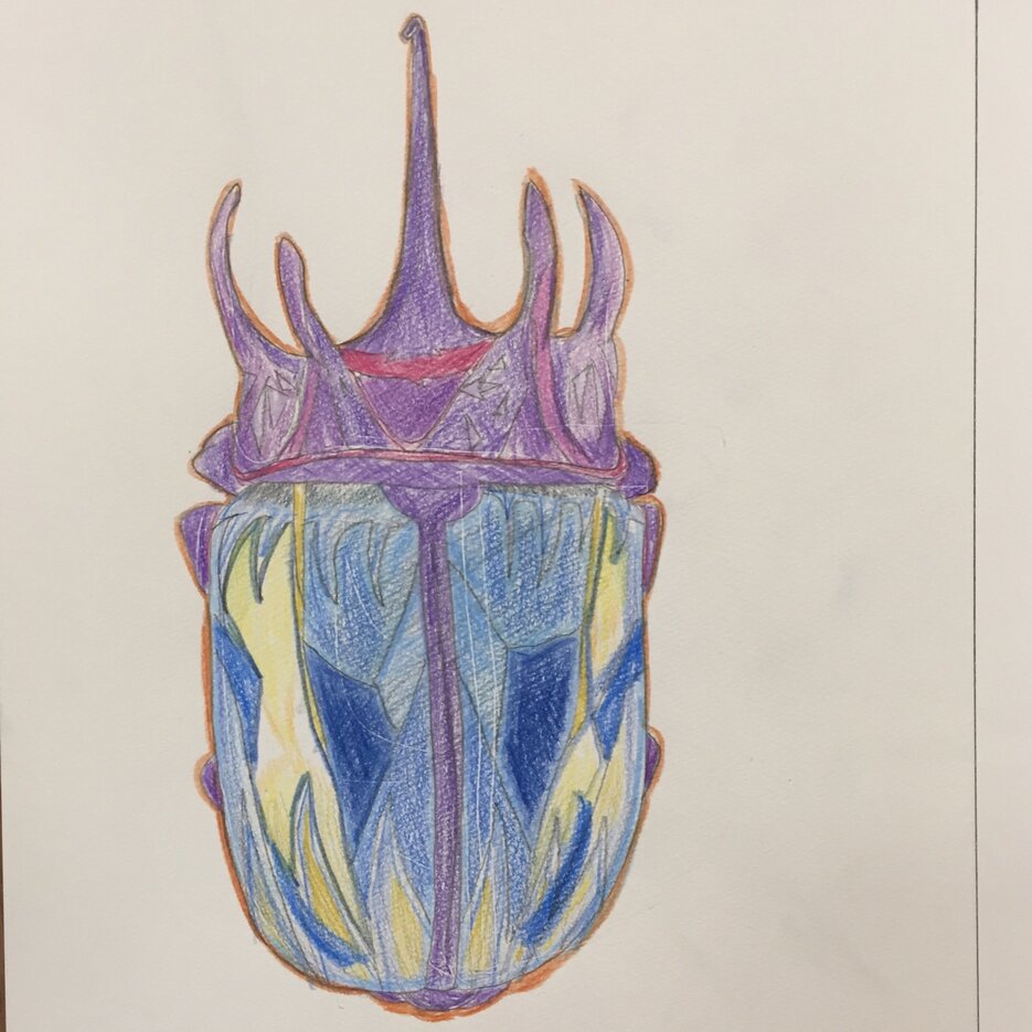 こちらのゴホンツノカブトの作品は青色をうまく使って表現されています。