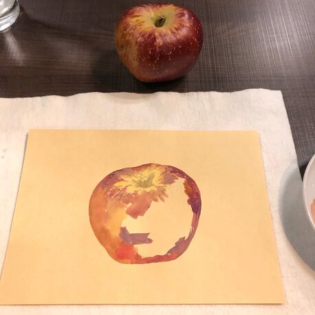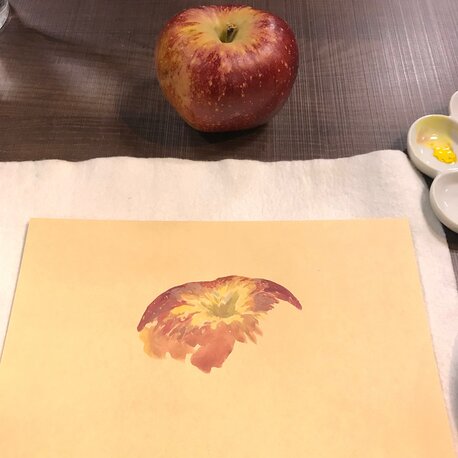 そして、私も林檎を絵具でダイレクトに、、描いてみました。
