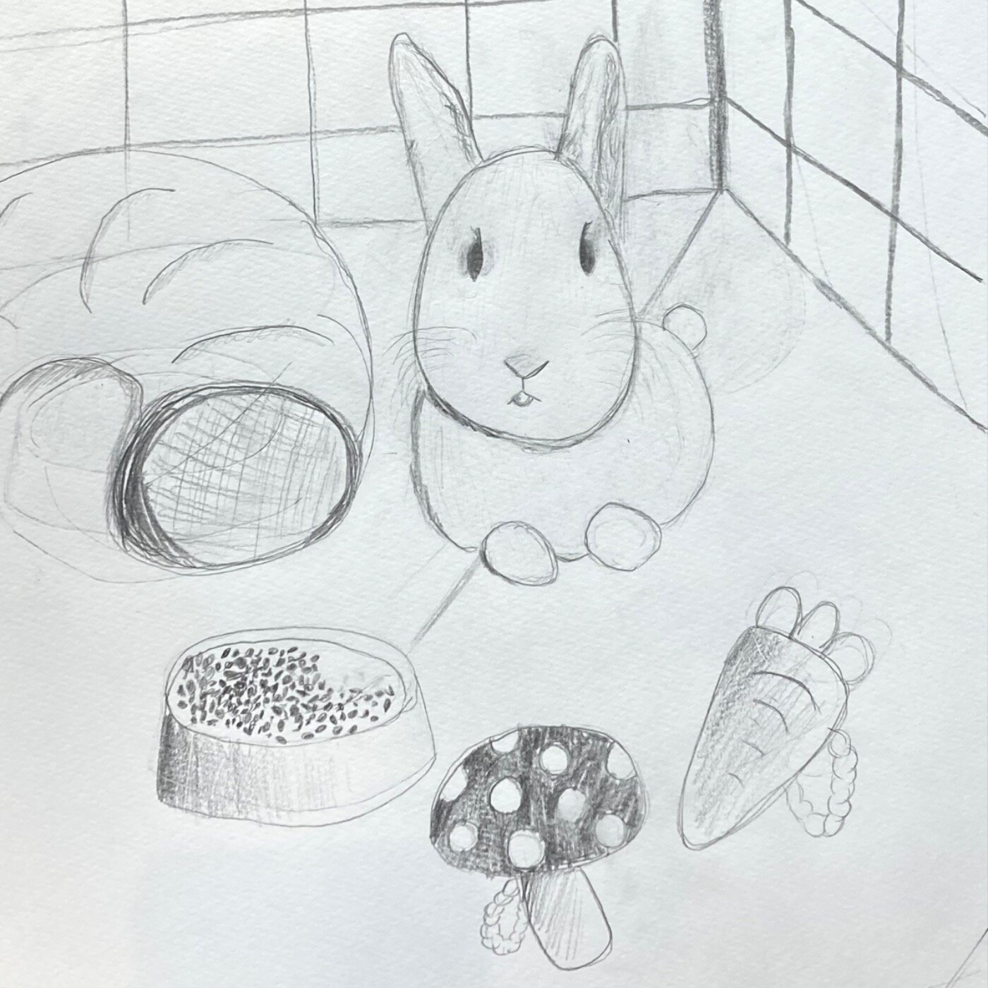 描き始めはうさぎだけ描いていたのですが、うさぎが楽しく遊べるお家をイメージすることで素晴らしい作品に仕上げることができました!