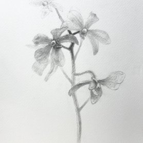 写真上・実際に宮治綱先生が描かれた花の静物デッサンです。