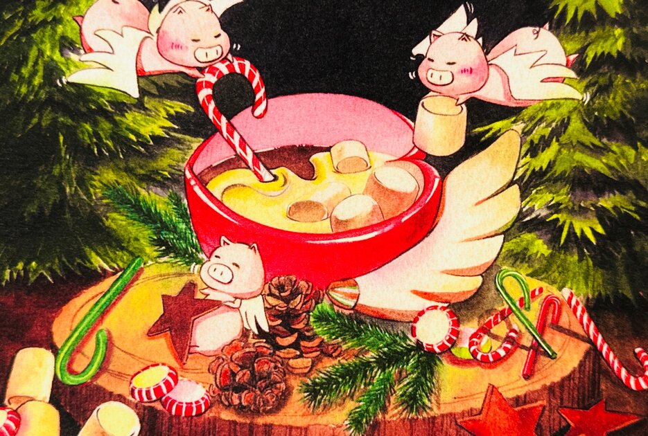 3匹の動物の可愛らしい印象が華やかな色彩と共に描かれています。