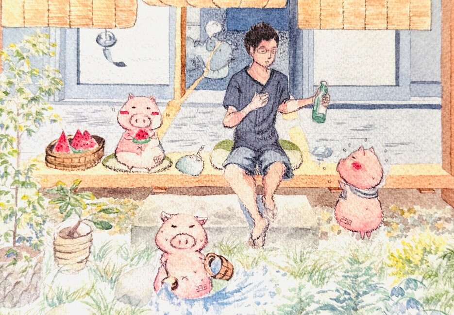 写真上・独学で描かれていた時の作品です。とてもほのぼのした軒先の雰囲気が伝わりますね。