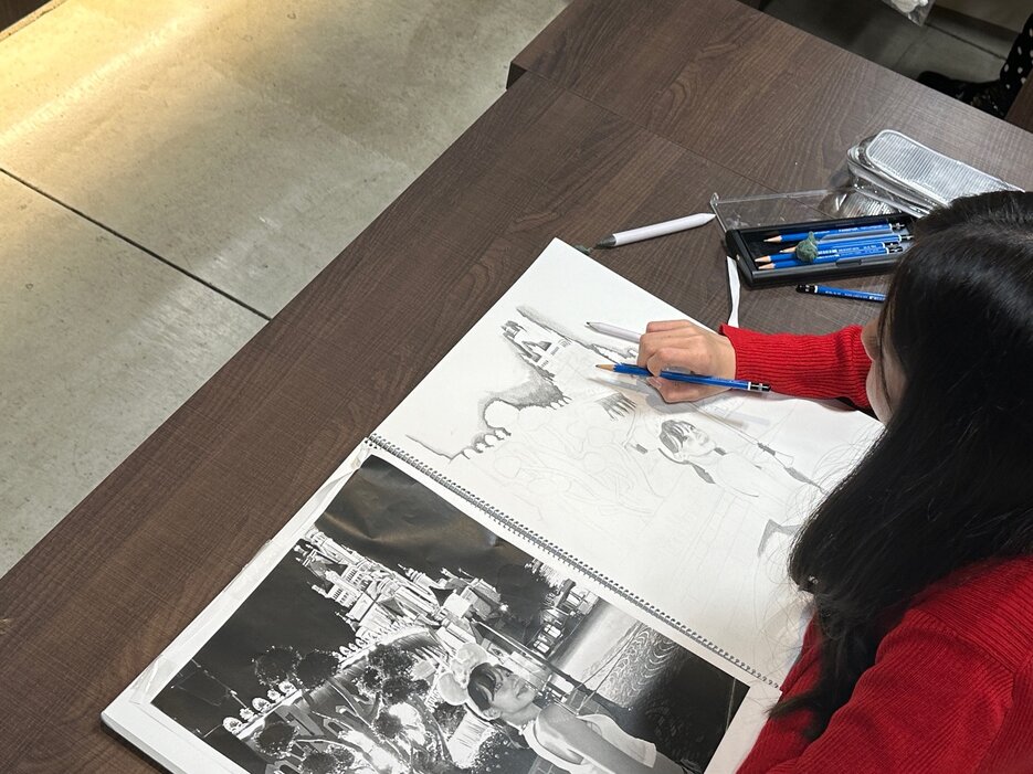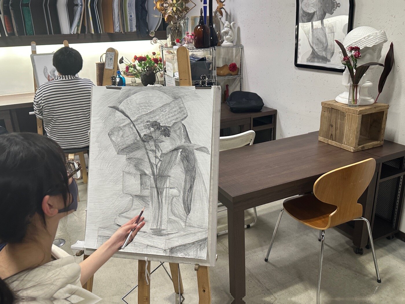 無料デッサン体験に必要なスケッチブック・画材などはこちらでご用意致しますので手ぶらでお越しいただけます。