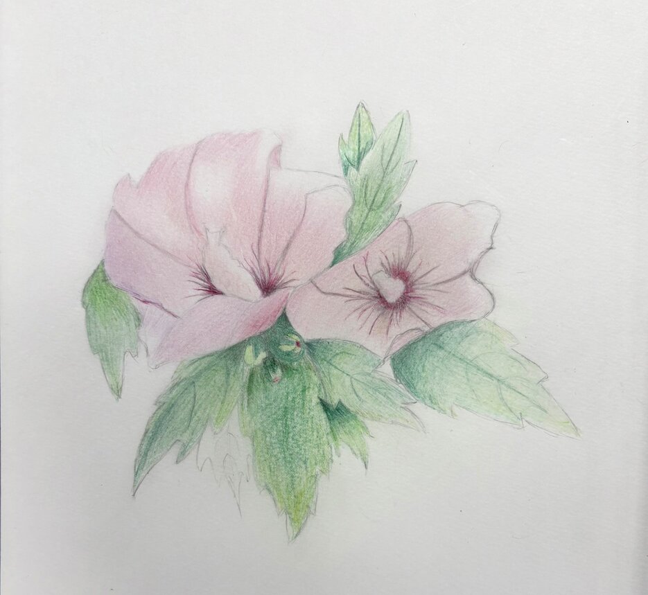 色を繊細に表現することが得意な生徒さんで、色鉛筆の色や発色のさせ方を何度も試しながら完成させました。