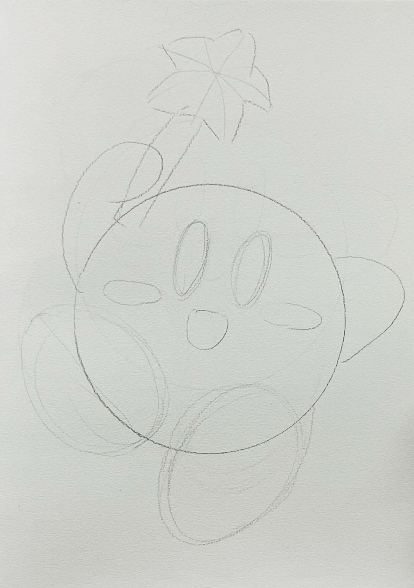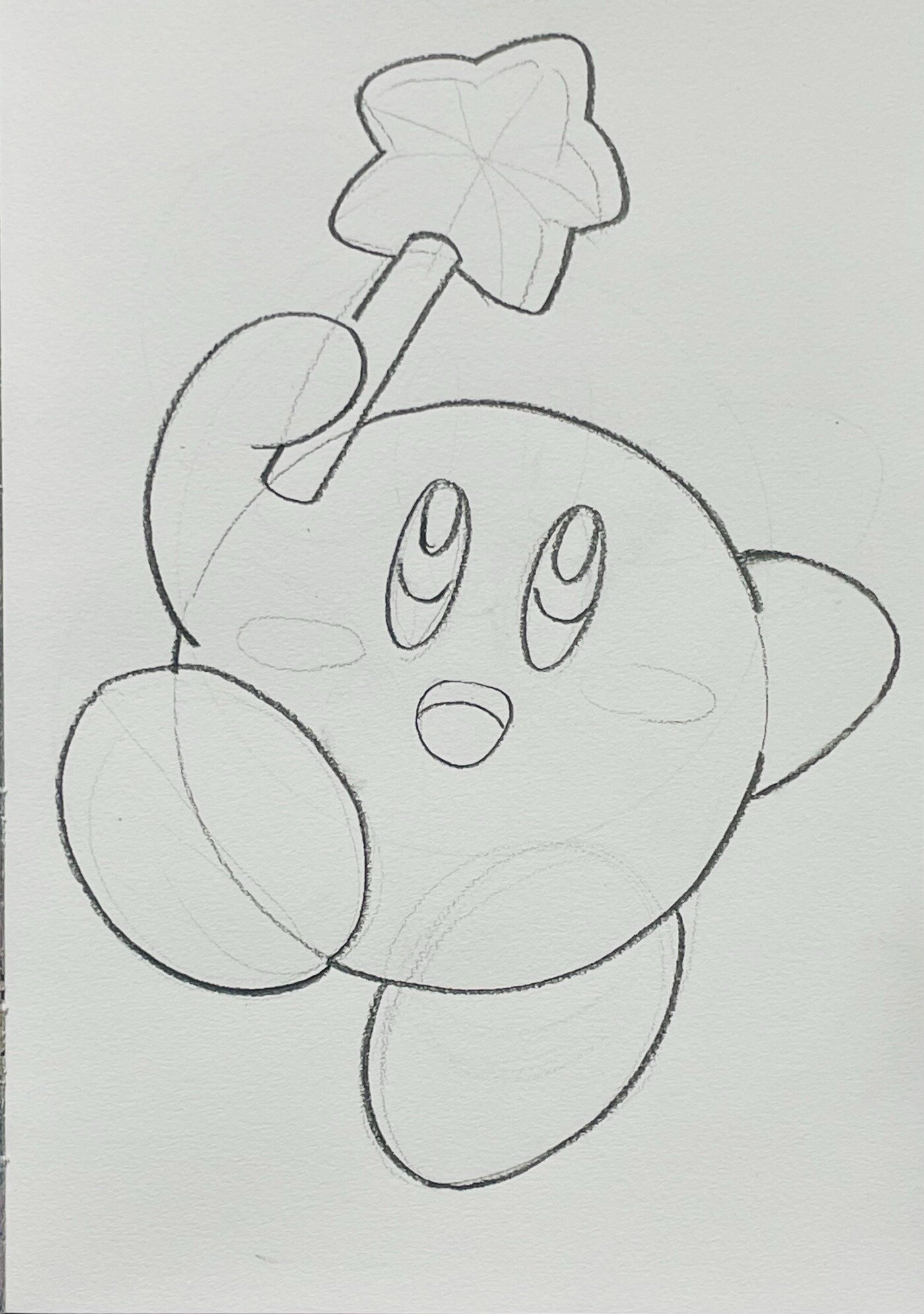 ②あたりを頼りに、しっかりとした輪郭線を引きます。