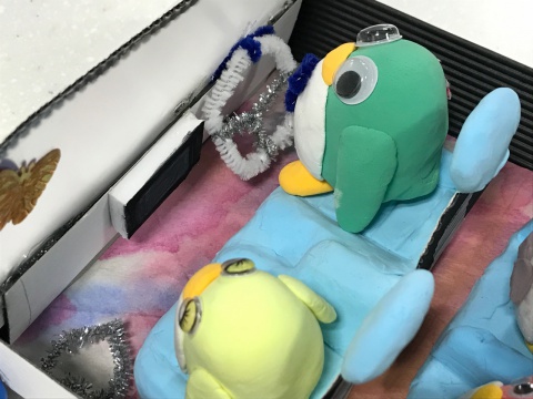 もうひとつ、以前も紹介した紙粘土作品の続きをご紹介します。