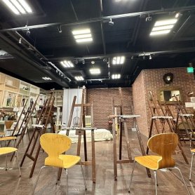 絵画教室(洋画・日本画・水彩画・デッサン)、ギャラリー、フレンチレストラン、カフェ、ワインバーに屋上テラスを備えた芸術複合施設