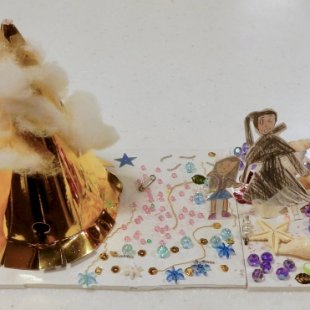 日本画講師の手塚華です。 小学2年の女の子たちの作品をご紹介します。 紙でできた三角帽をツリーに見立て、クリスマス飾りを制作しました。 スパンコールやビーズ、綿などをちりばめ 思い思いのクリスマスを表...
