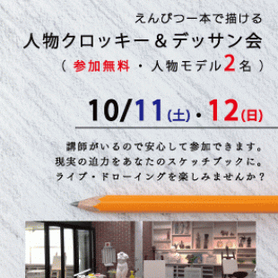 芸術の秋到来! 皆様方にはいつも温かくご支援賜りまして心より御礼申し上げます。 さて、この度、人物モデル2名を招いてクロッキー&デッサン会を10月11日(土)と12日(日)に開催いたします。 両日とも...