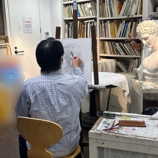 こんにちは、アート倶楽部カルチェ・ラタン事務局です。 10月上旬ですが少し肌寒くなってきましたね。紅葉の季節もすぐそこですね。 写真上・男性のモデルさんを描いている様子です。 実際にモデルさんを目の前...