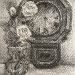 こんにちは、アート倶楽部カルチェ・ラタン事務局です。 今回は生徒さんのデッサンのご紹介です。 写真上の作品は、青山誠一先生の教室で制作された20代女性生徒さんの作品です。 アンティークの時計に白いバラが...