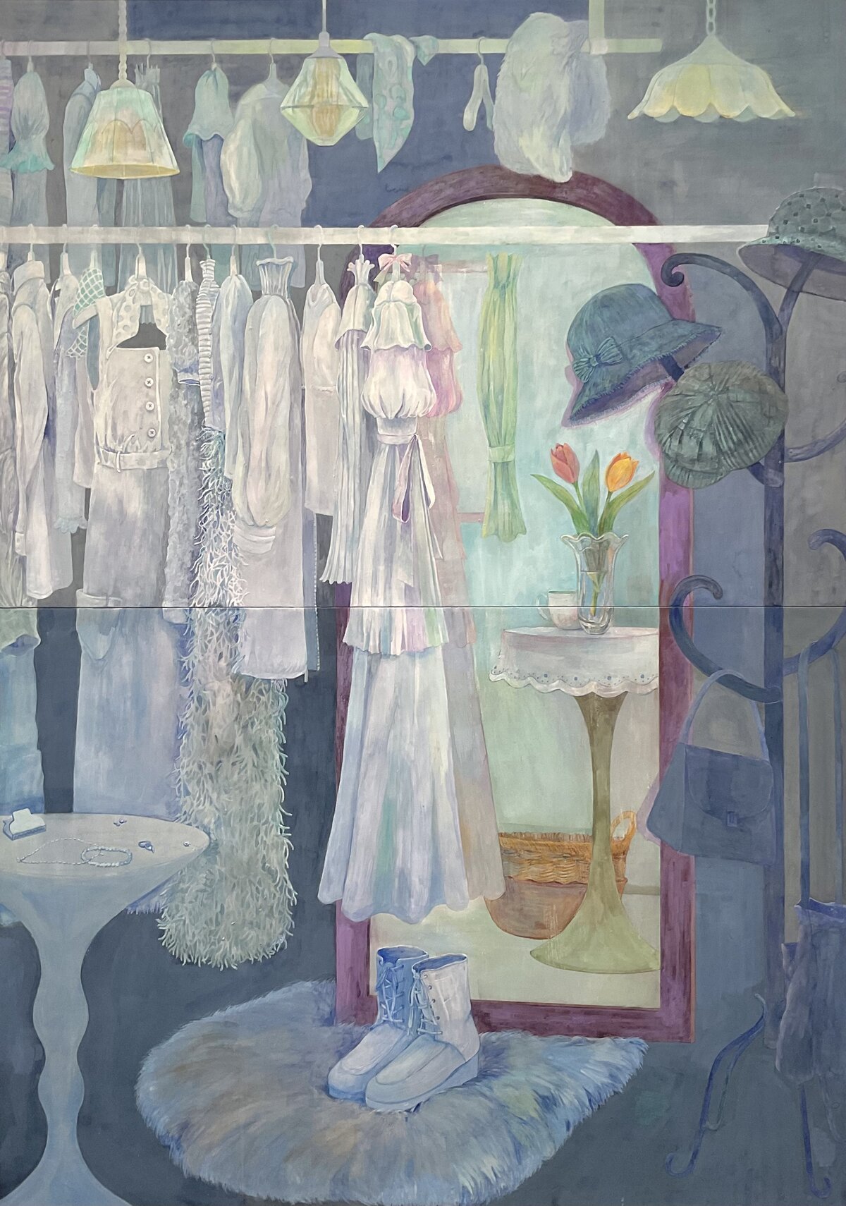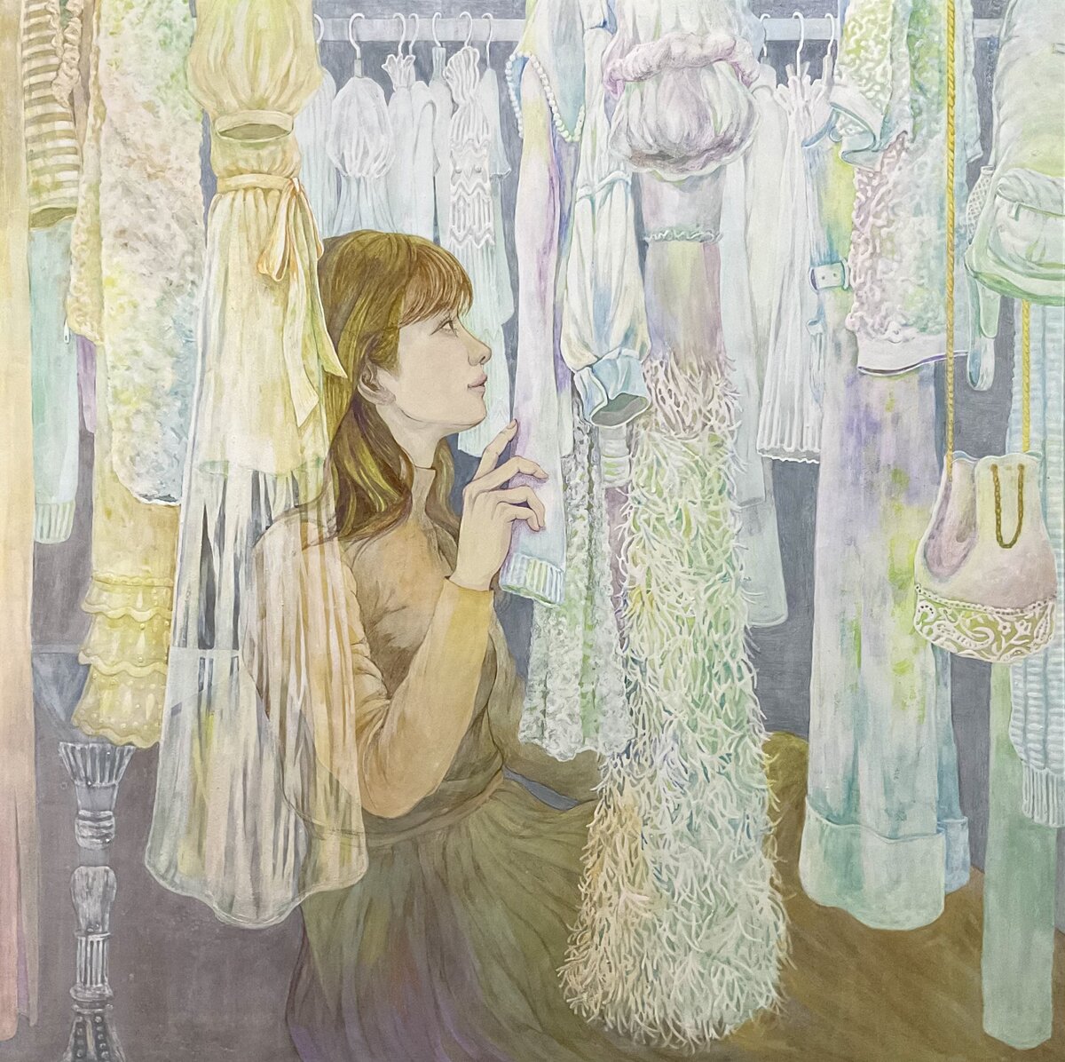 日常の瞬間で、自身の心動きときめくものをモチーフに描くことが多く、描いていて楽しいと思えることを大切にしていきたいと考えています。