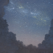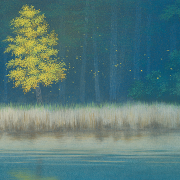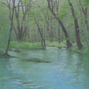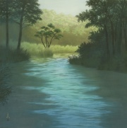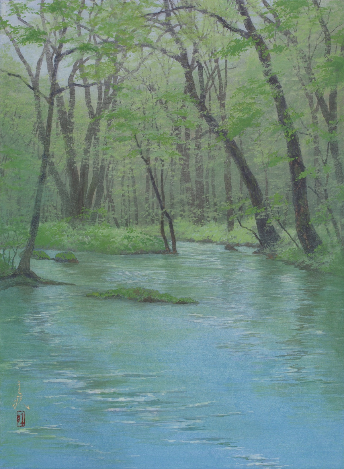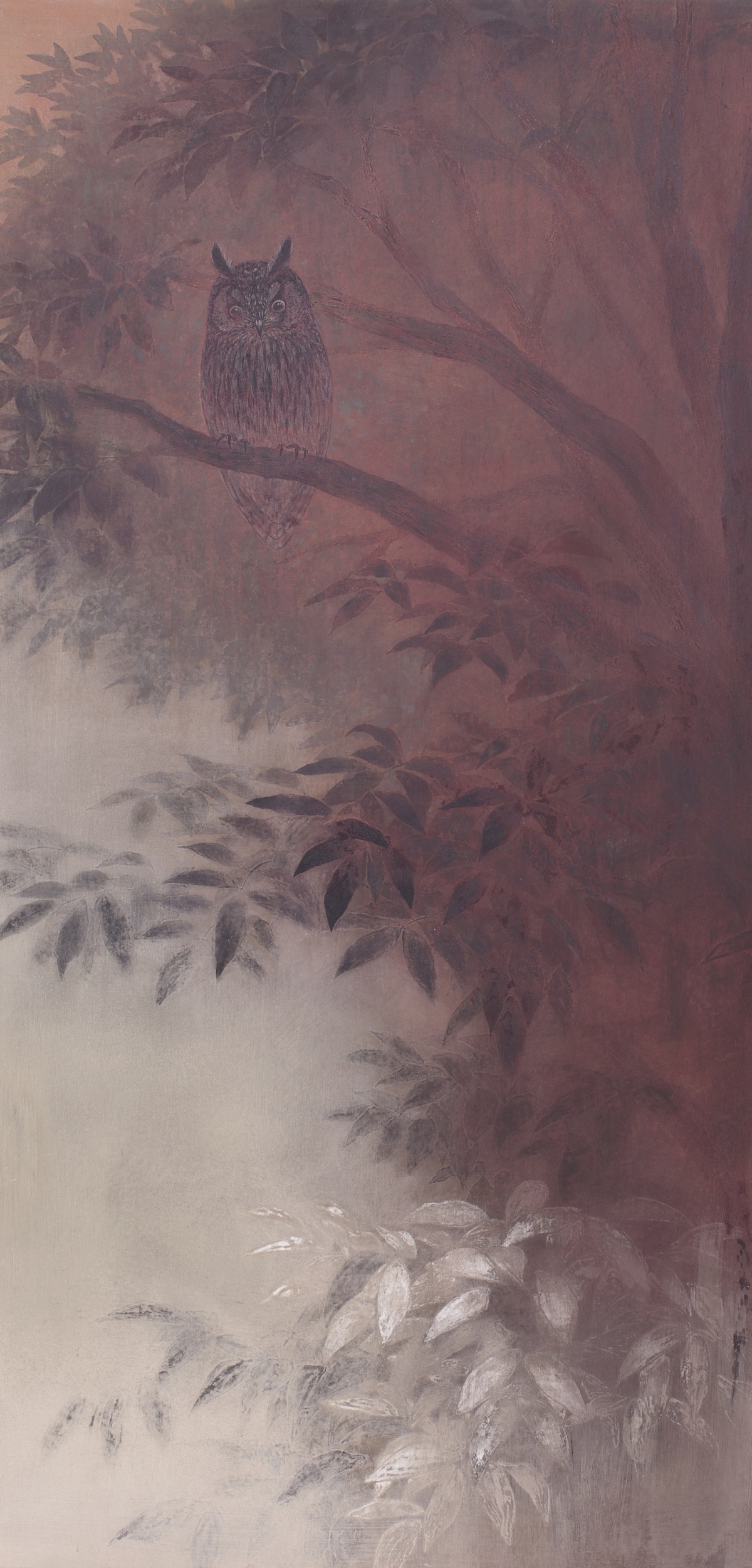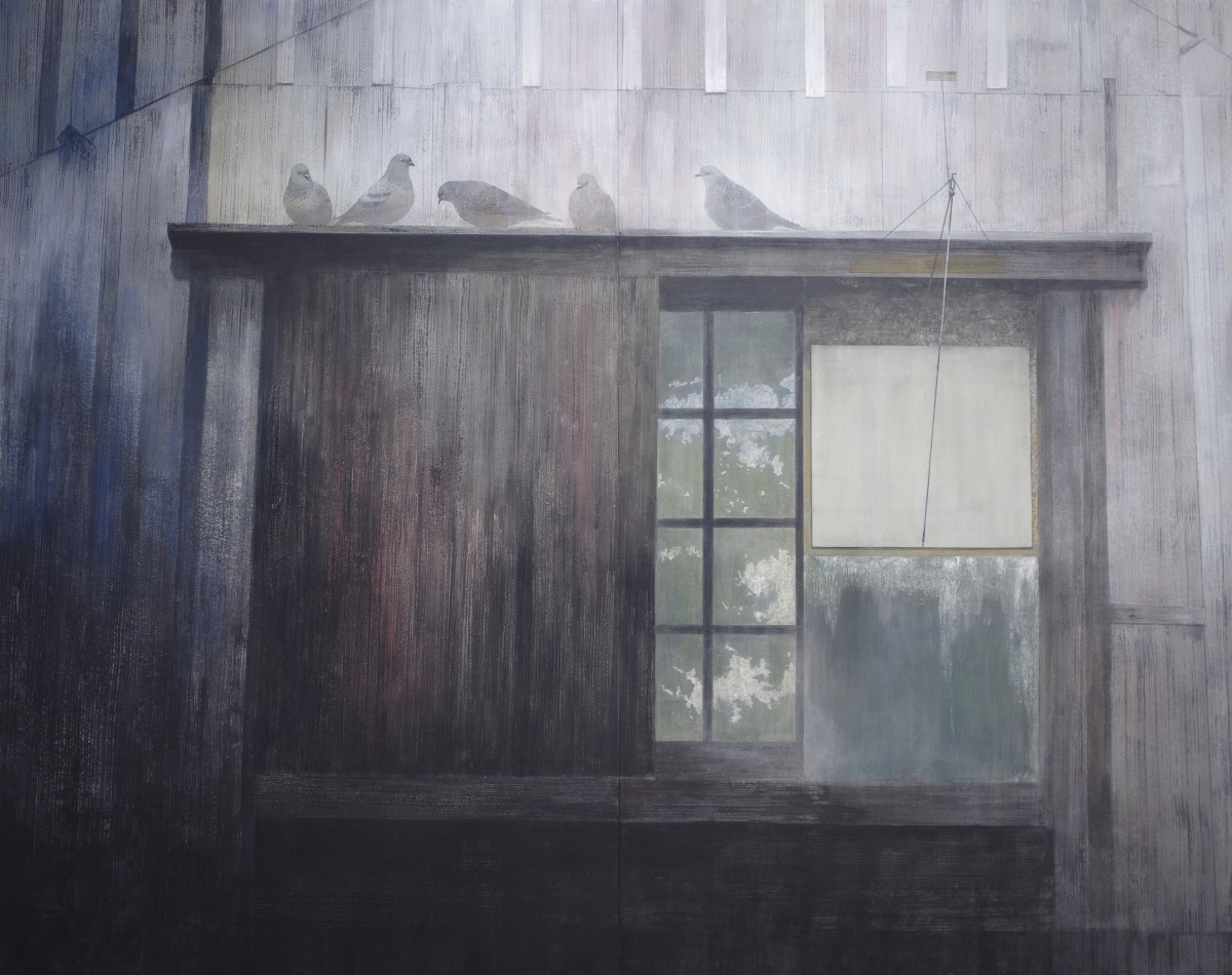 薄い絵具で複雑な色彩になるようにしています。 それと同時に空気感を持たせるように表現しています。