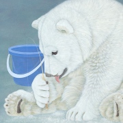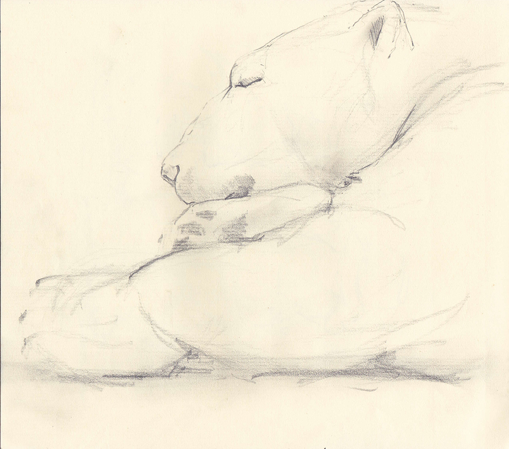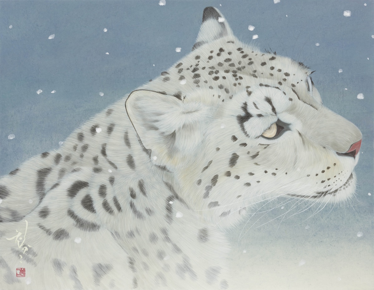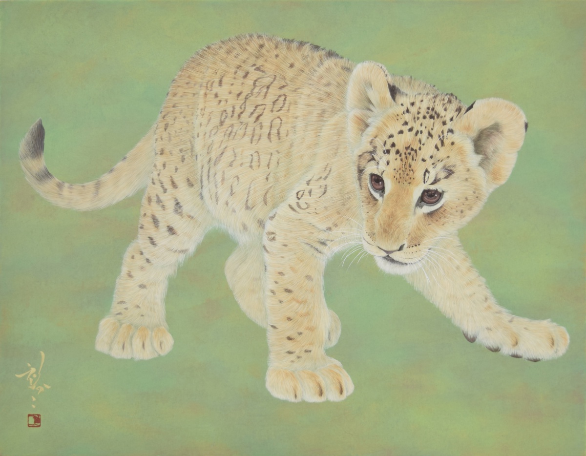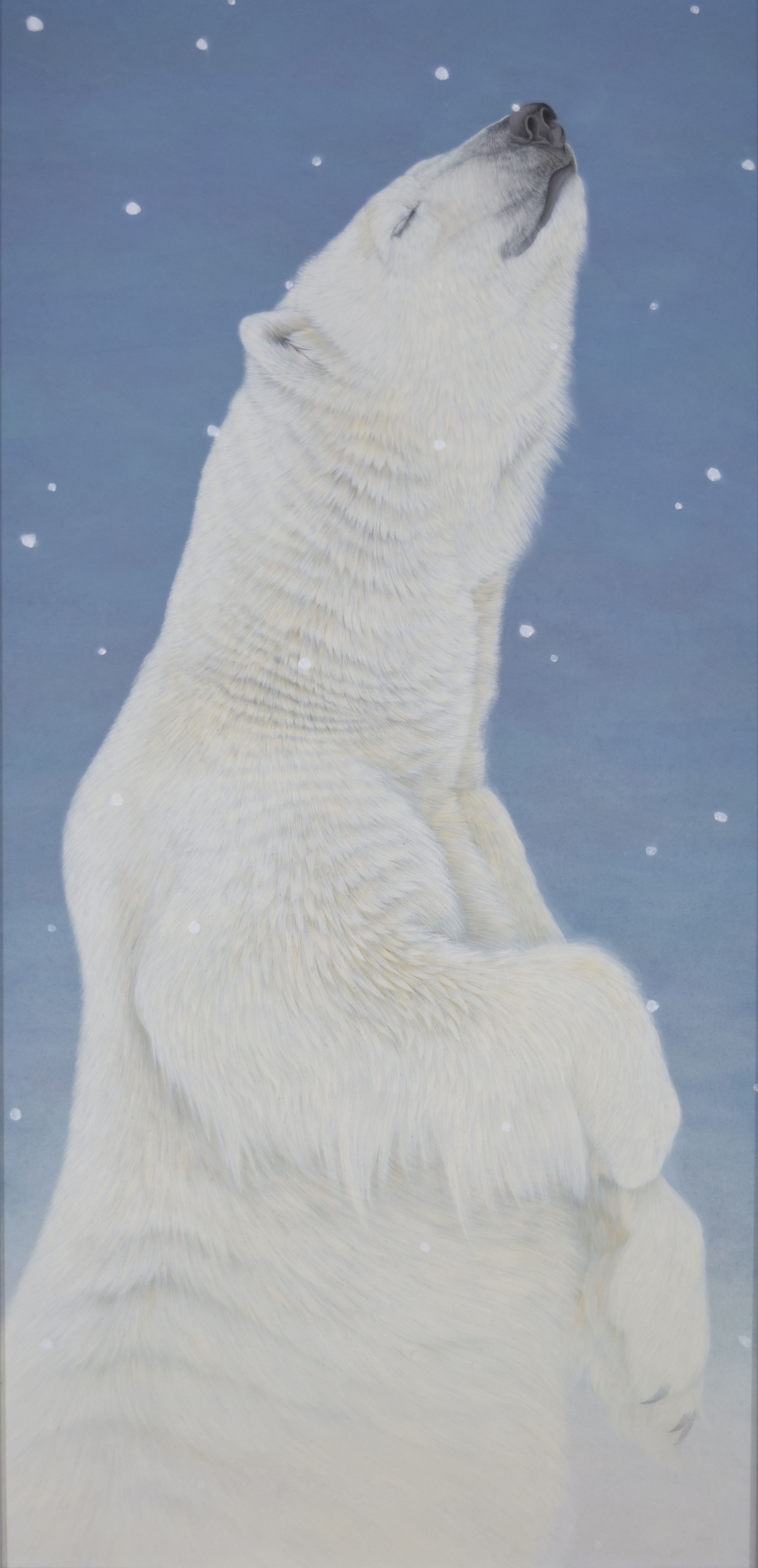 なかでも特に白い動物が好きで、シロクマやホワイトタイガーなどの白変種を好んで描いています。