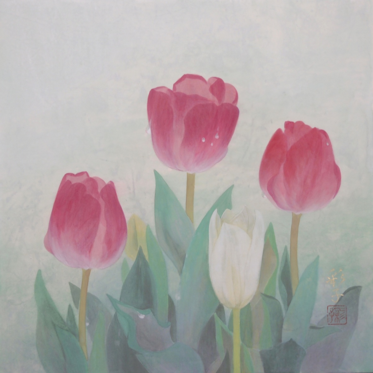 人物や植物などのモチーフに、その時々の心情を投影させて描いています。