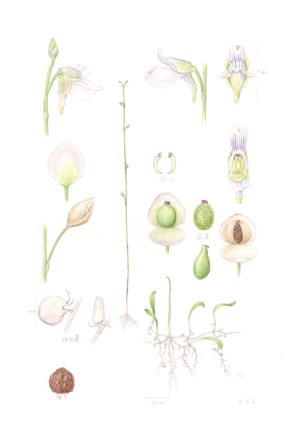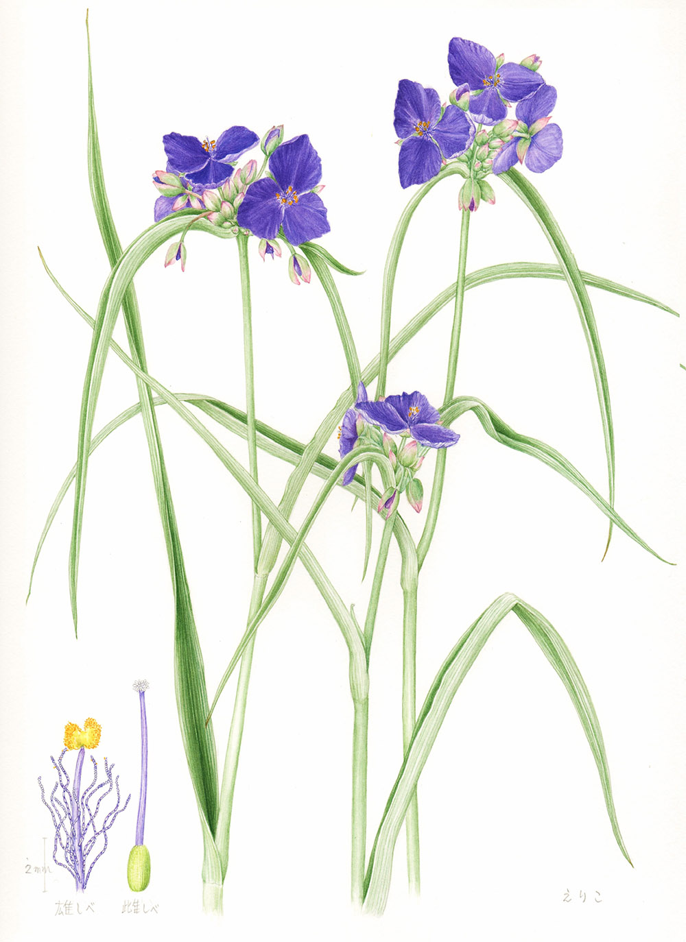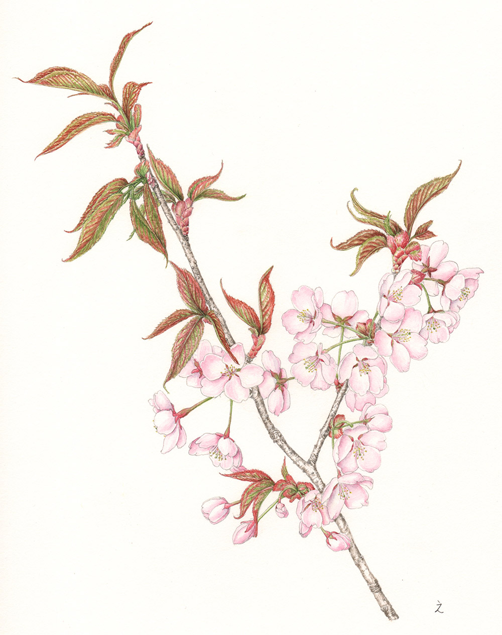 描く手順は鉛筆で実物大にデッサンし、透明水彩絵の具で彩色します。画材も手軽ですので絵を描いたことのない方もすぐに始められます。