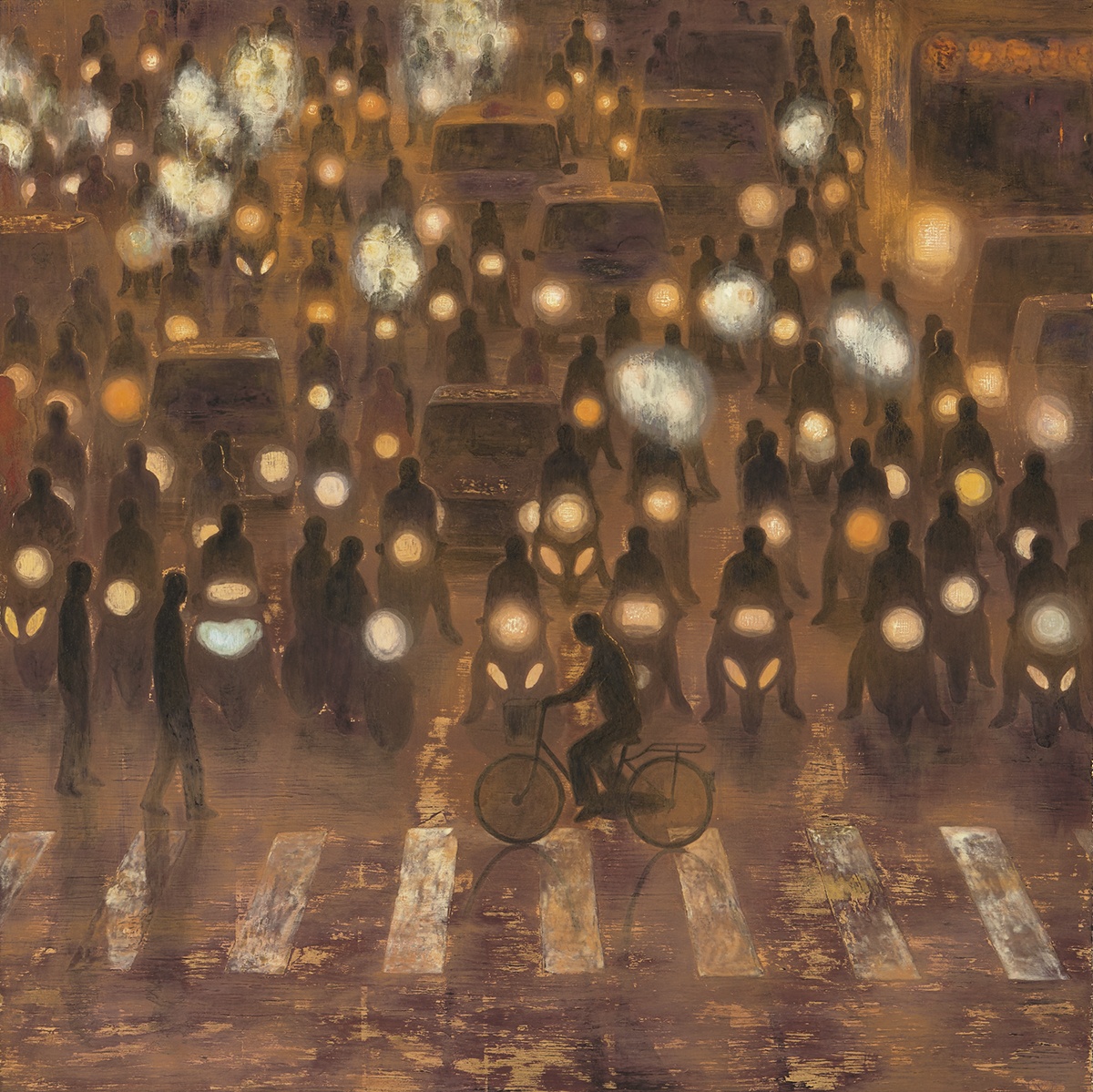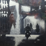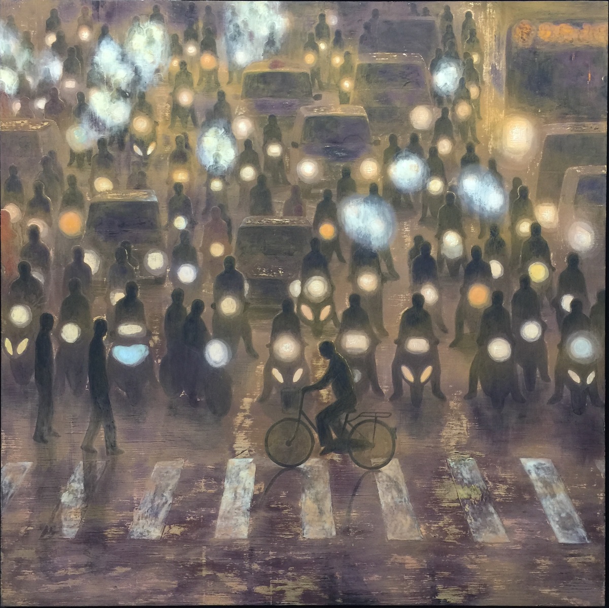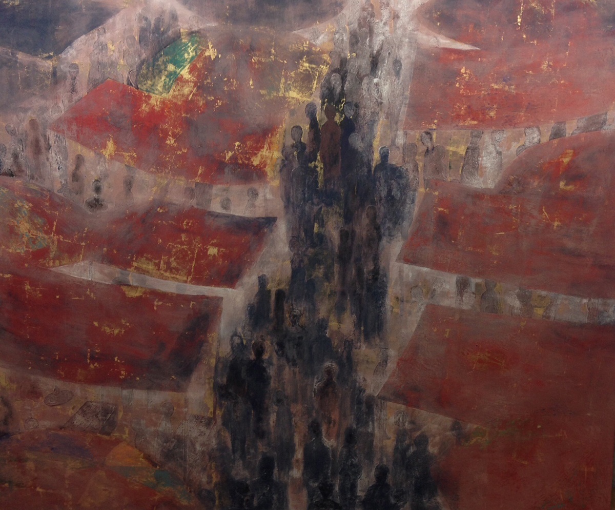 人が多勢いる気配や雰囲気に魅かれ、生命力を感じるような絵を描きたいと思っています。