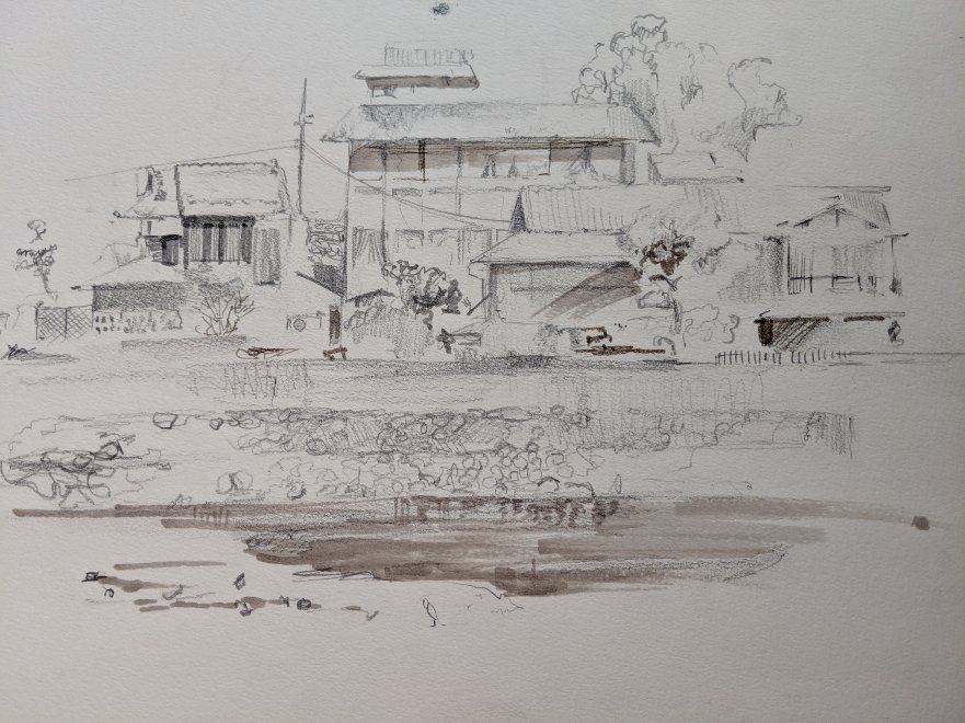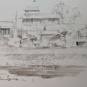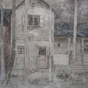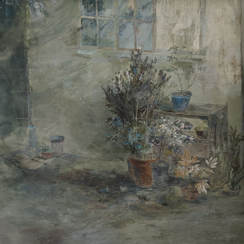 古い家屋や樹木など、時間の流れが感じられるモチーフを好んで作品に取り入れています。