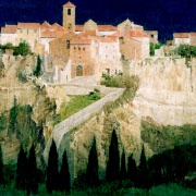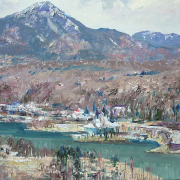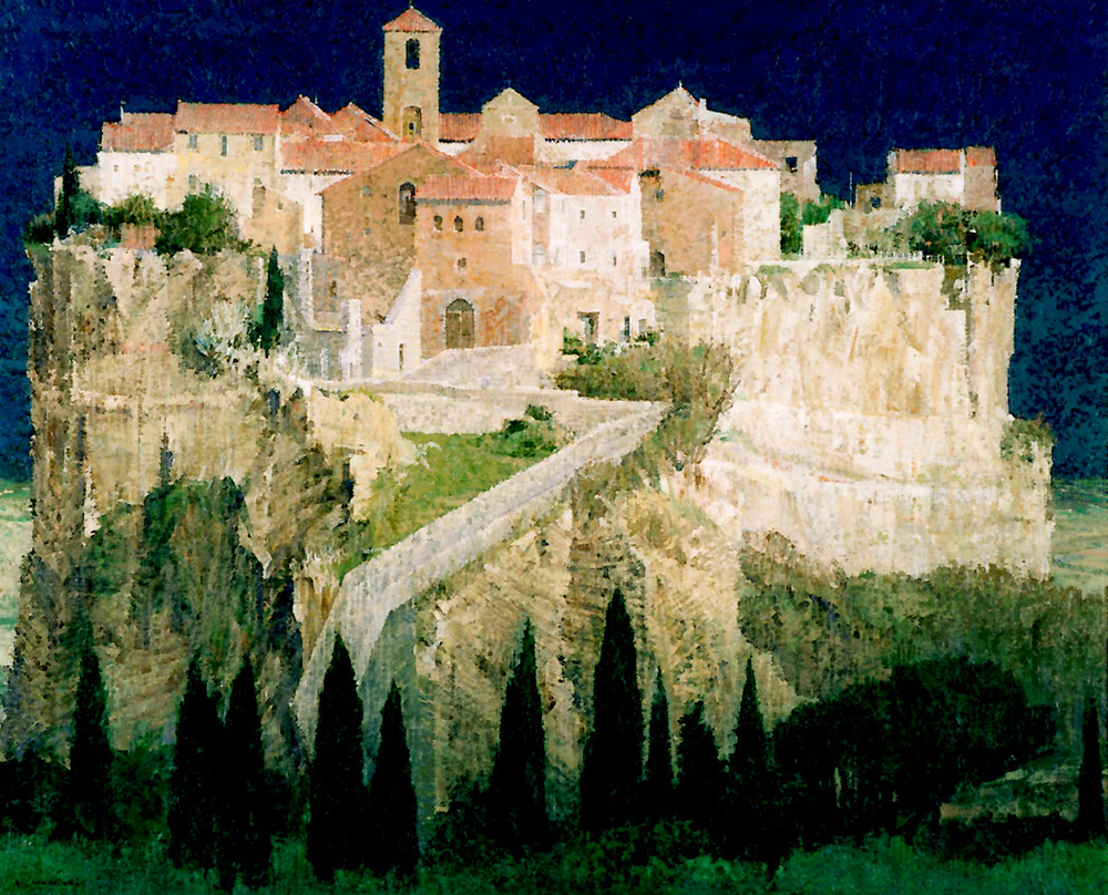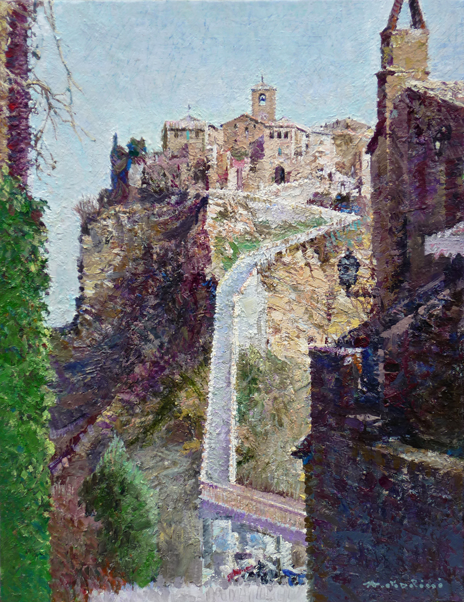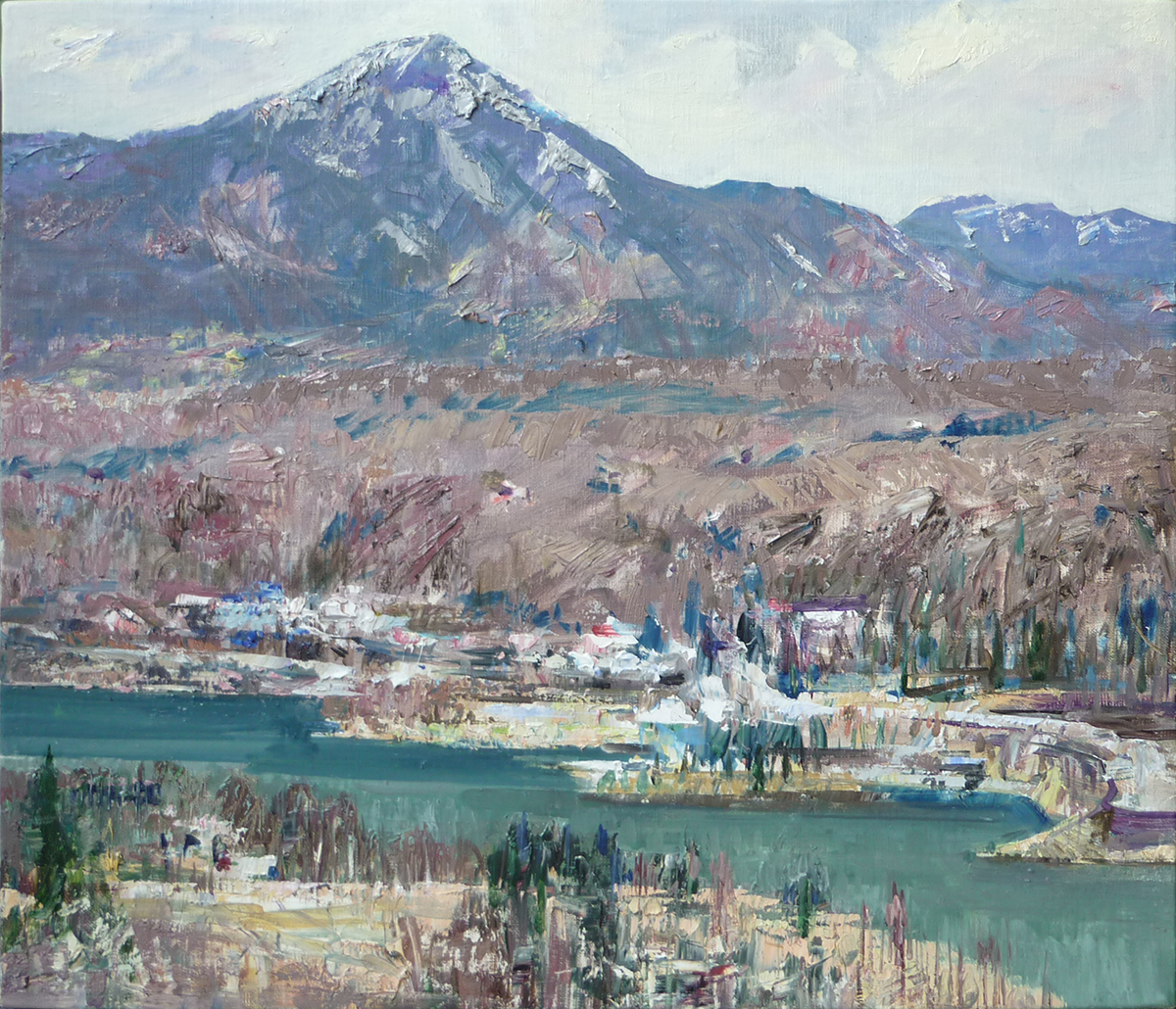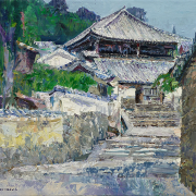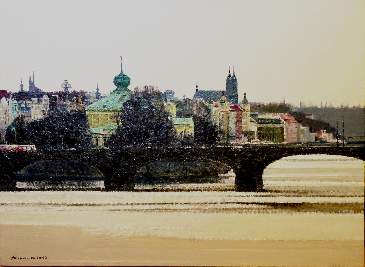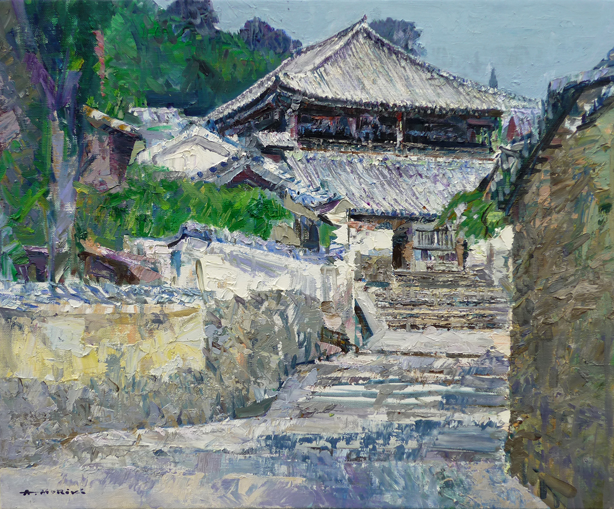 日展及び光風会展への出品作は外国風景が多い。中世の山岳都市や、断崖のある現実の風景をもとに、更にドラマチックに構成させる。建物を詩化し、イメージの中で発酵させ、心象風景と化したものである。マチエールにより重厚な作品に仕上げている。日本の風景画は全て現地で制作をしている。