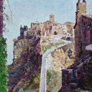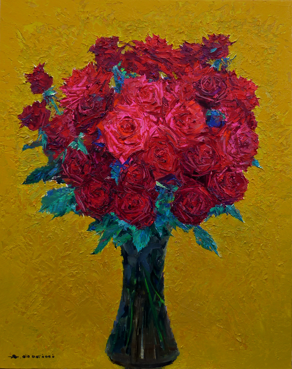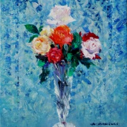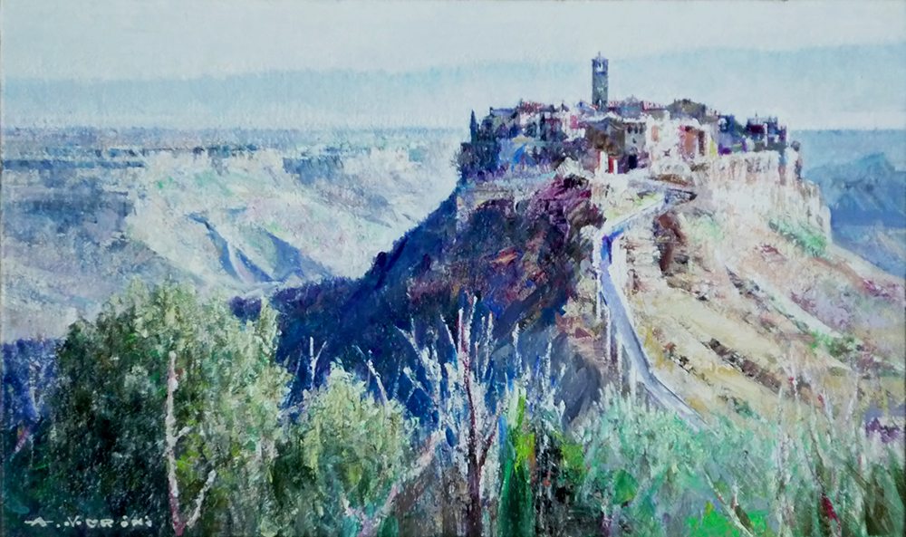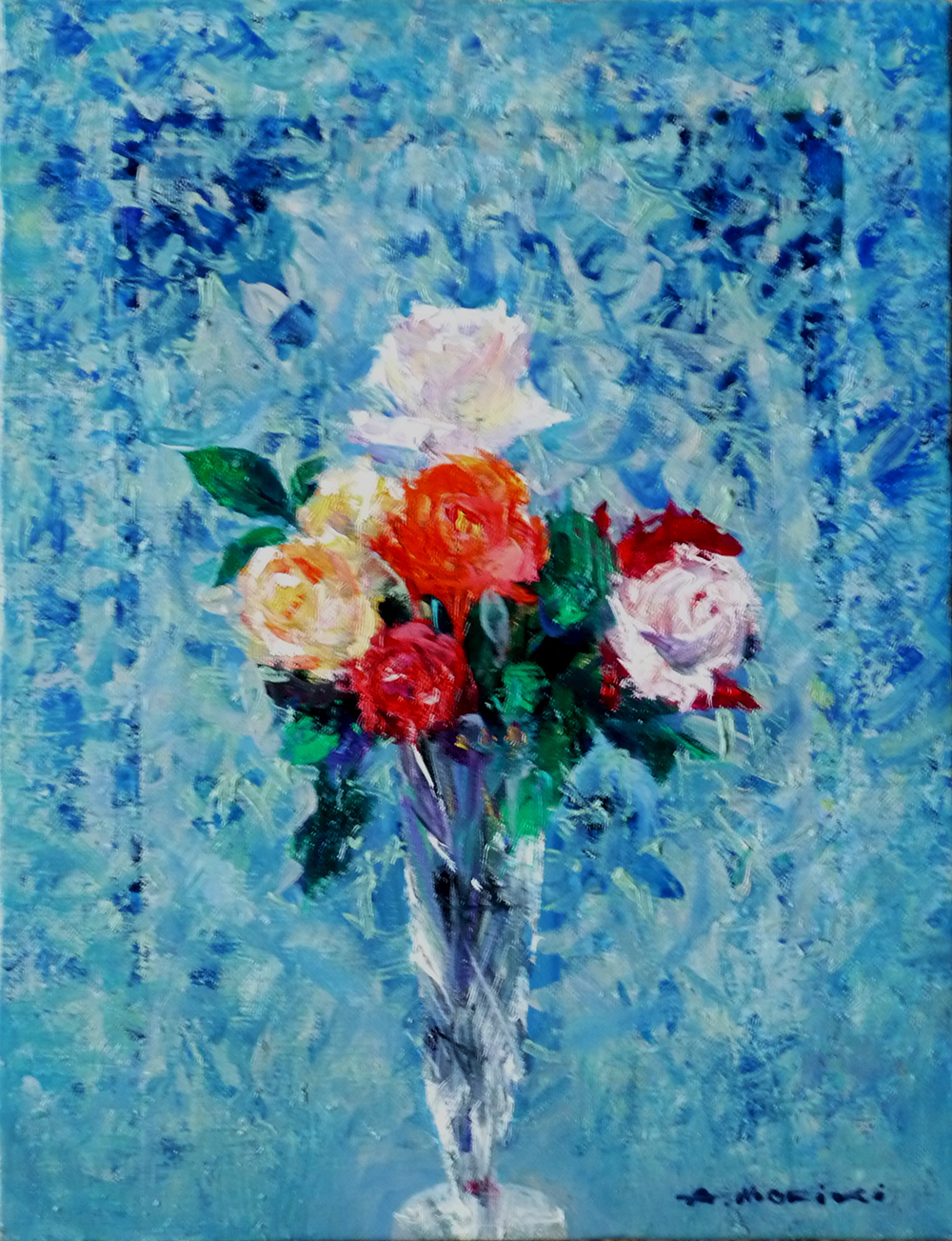 その風景の中に自分を置き、自然の偉大さを認識する。空気と風、そして風土の匂いまでも感じとる為には現地で描く事が基本であり、大切であると考える。人物や花も楽しく描く事が出来るし、好きである。花は、薔薇とカサブランカが好きである。