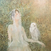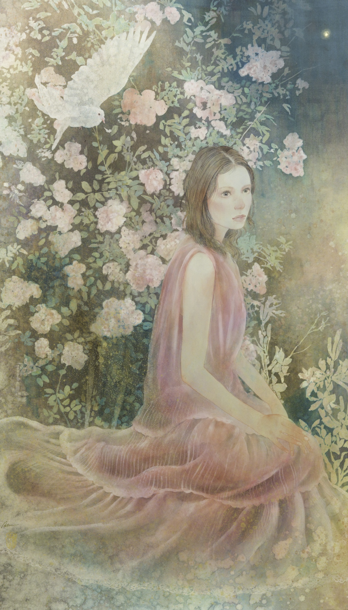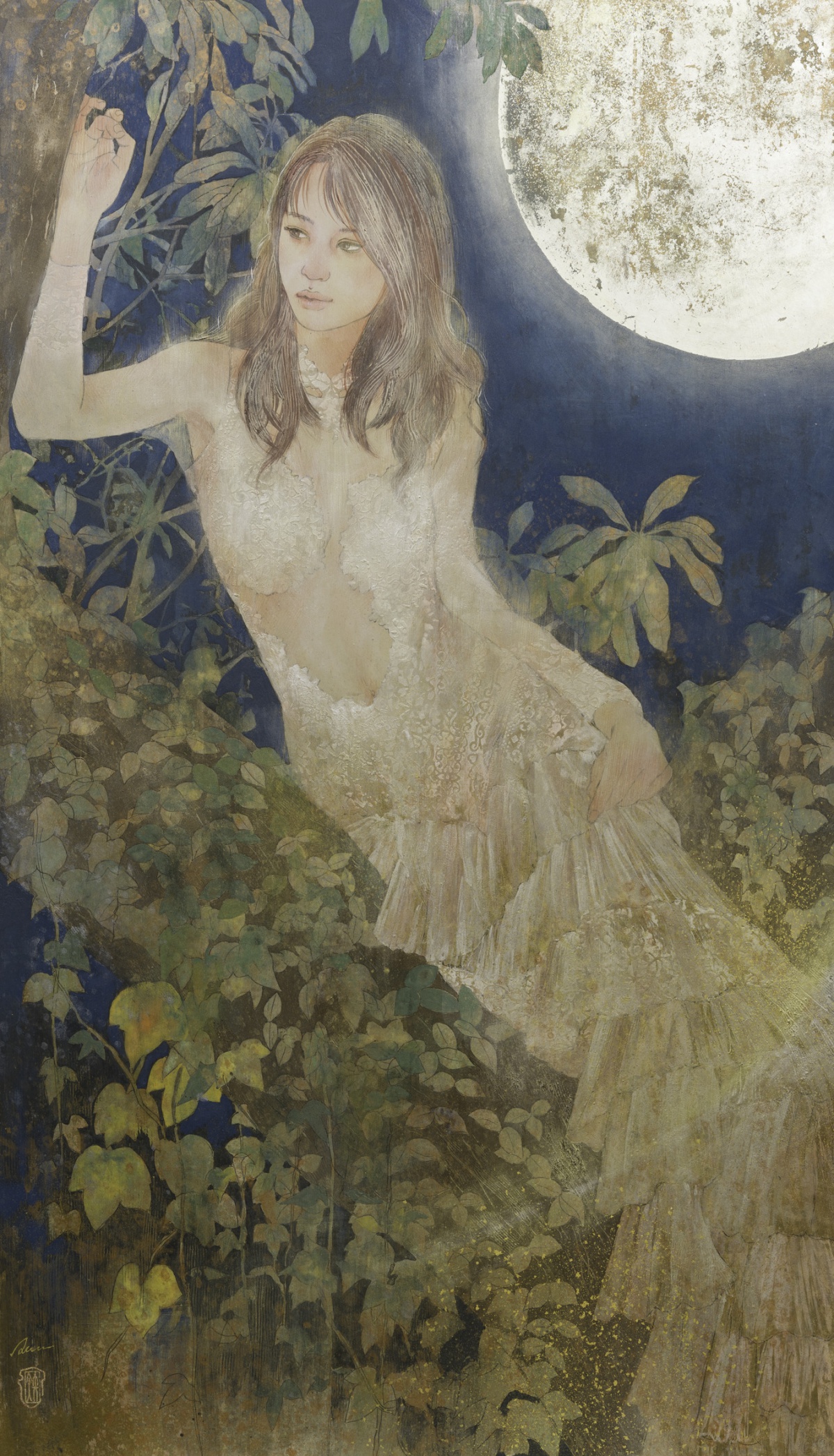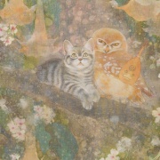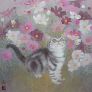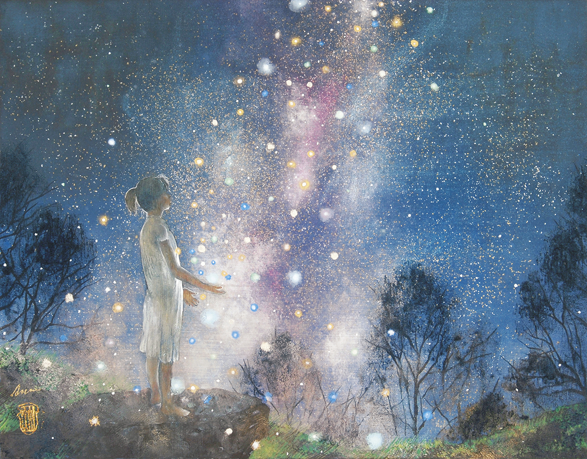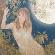 誰の中にでもある、夢の世界、想像の世界を絵にすることを得意としています。また、絹本制作や、模写などの古典技術に裏付けられた新しいスタイルの日本画。