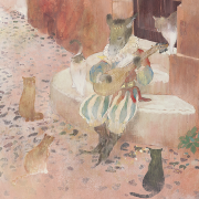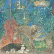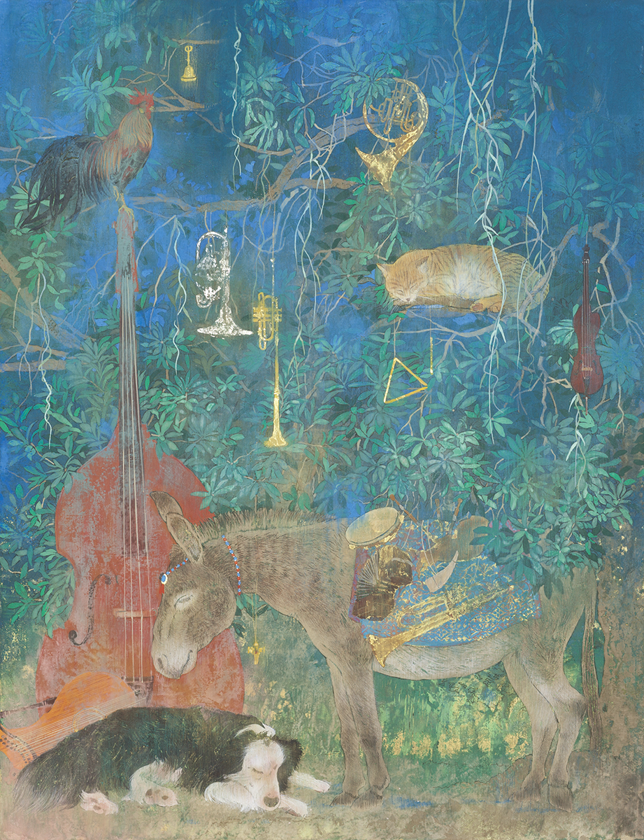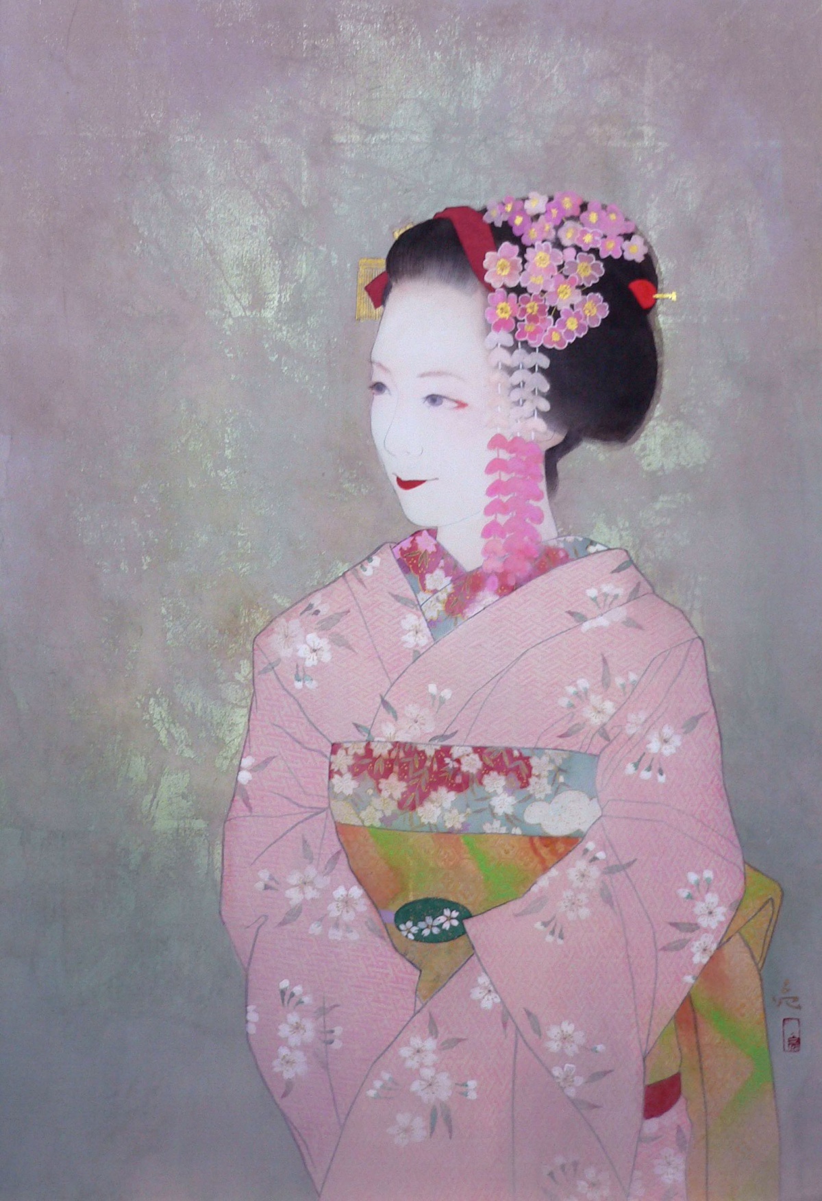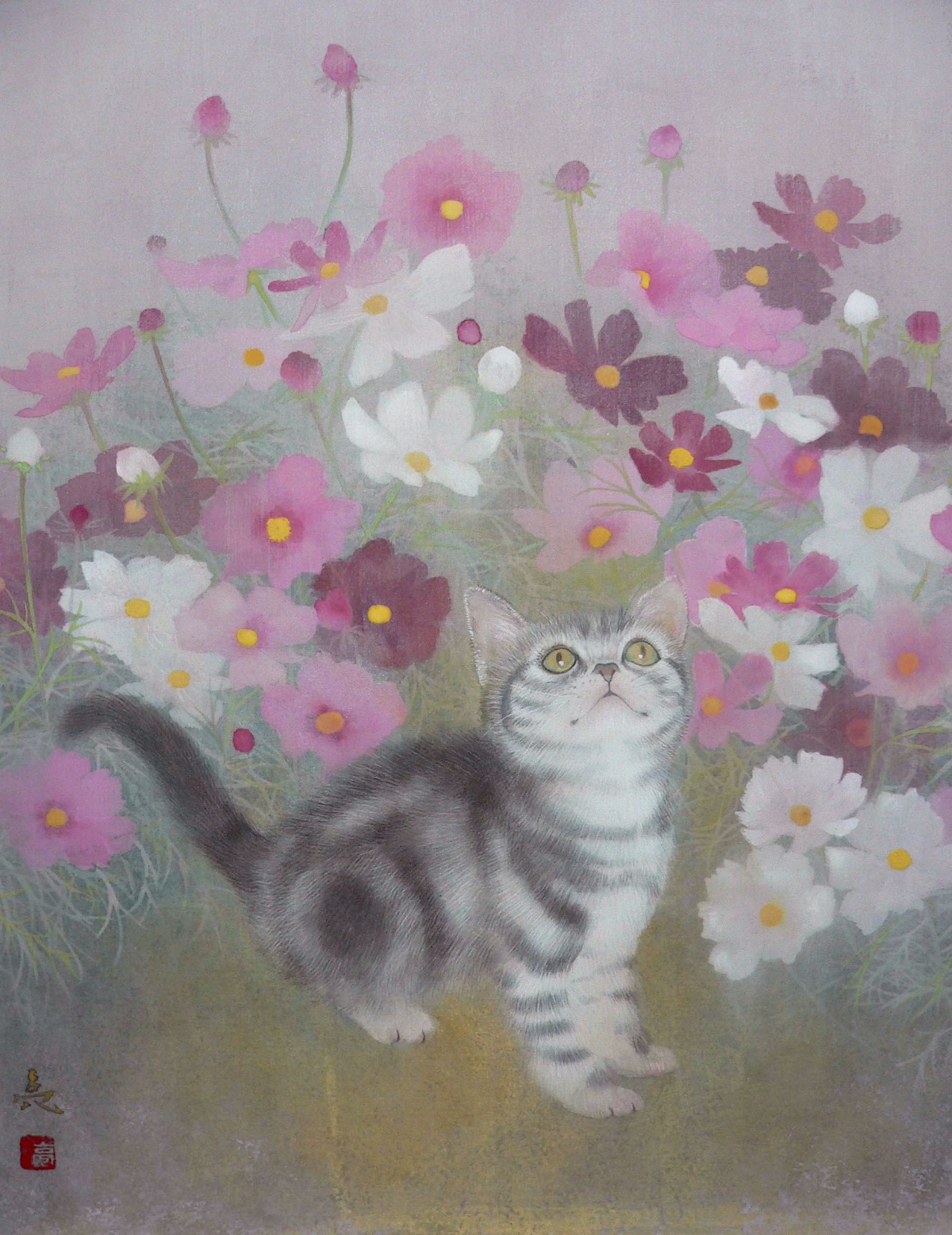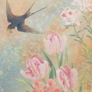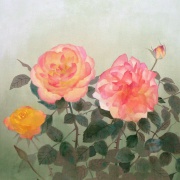 誰の中にでもある、夢の世界、想像の世界を絵にすることを得意としています。また、絹本制作や、模写などの古典技術に裏付けられた新しいスタイルの日本画。