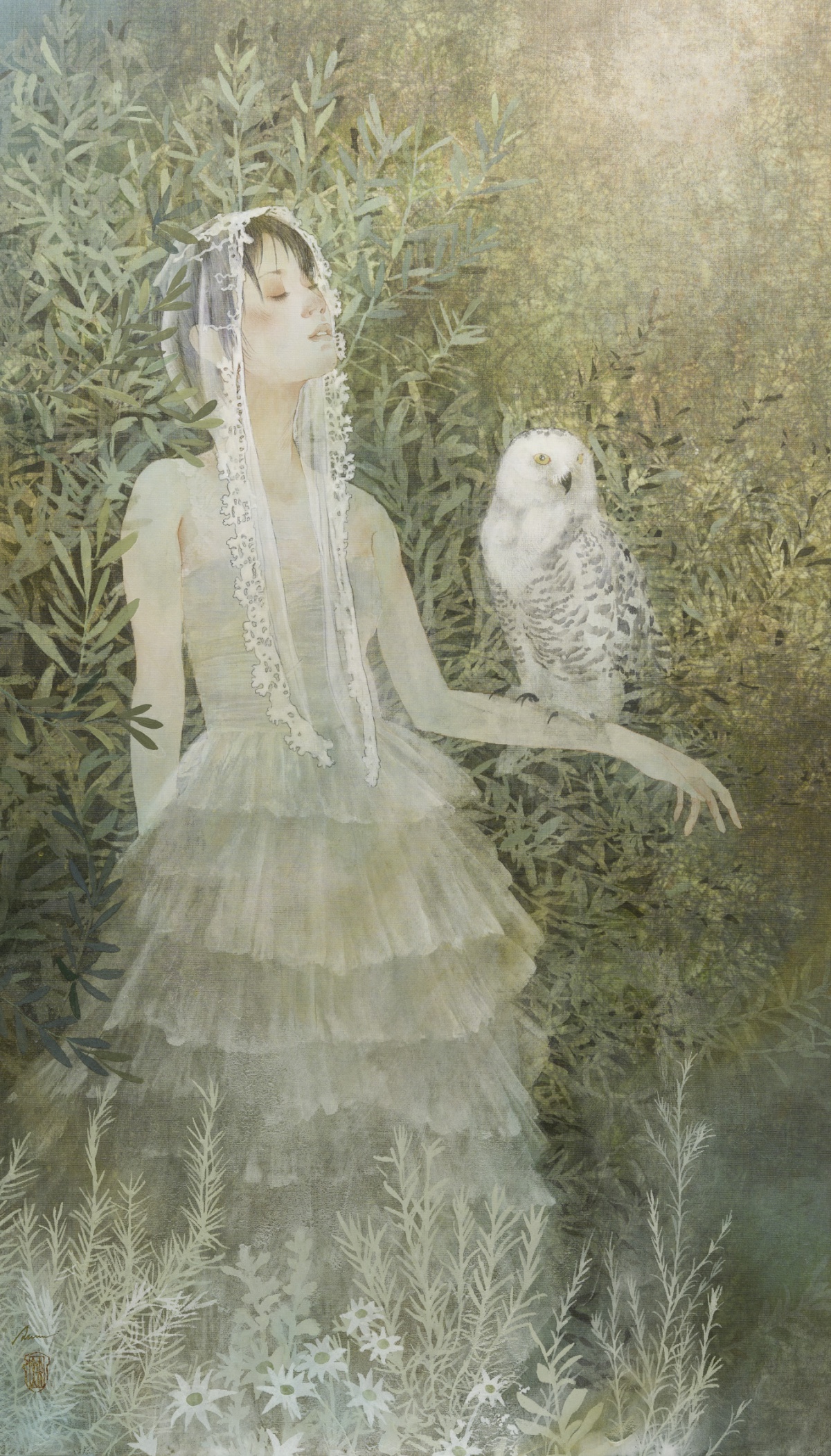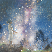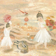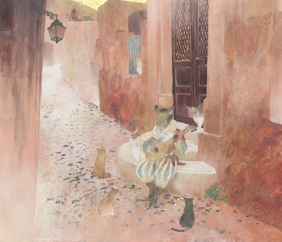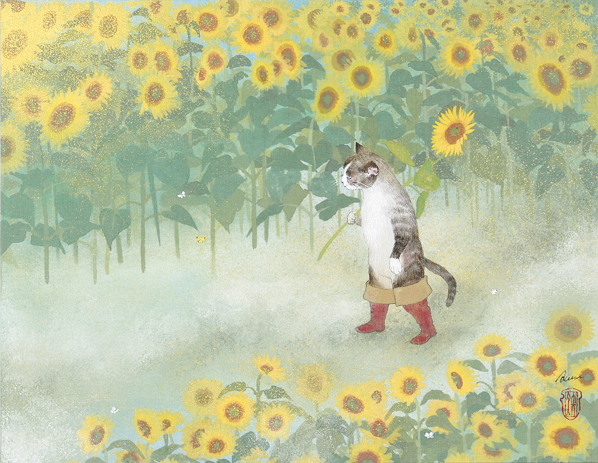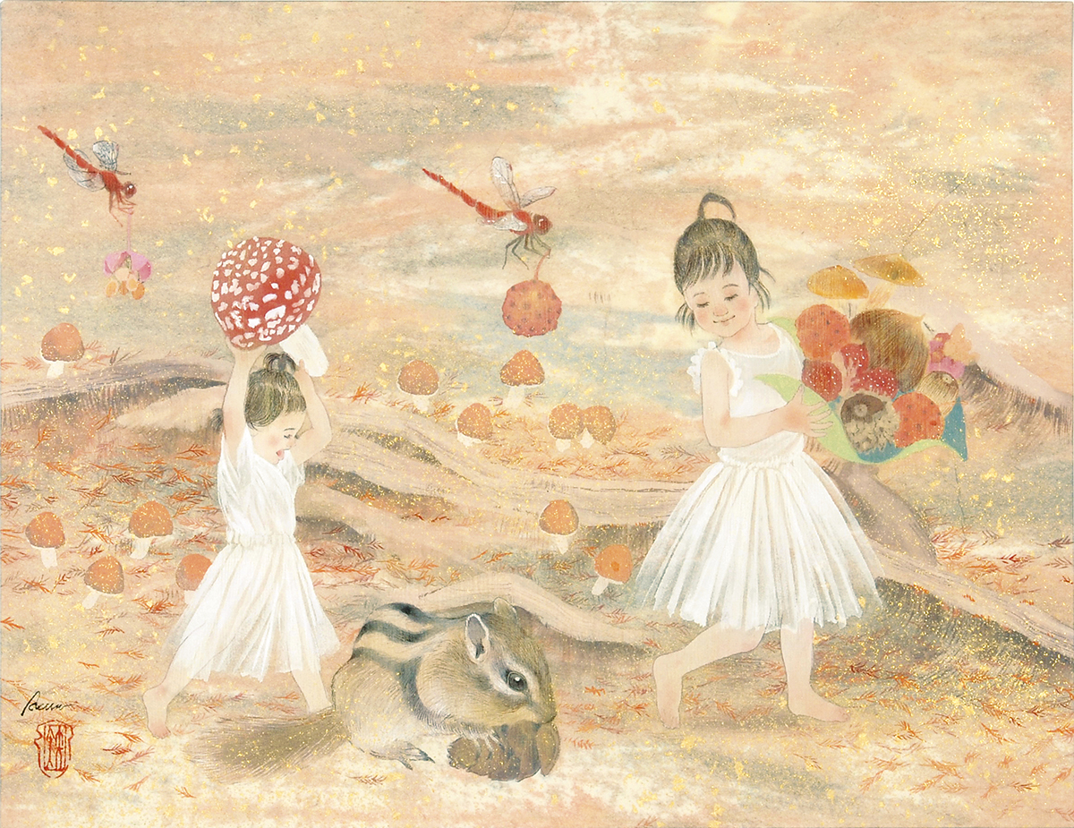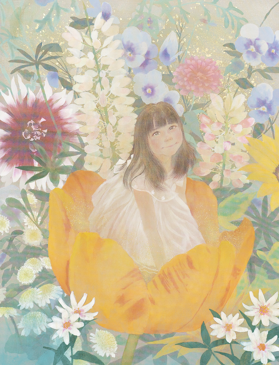 グリムやアンデルセンなどの童話や妖精、神話の世界、どこか懐かしい心の風景やキャラクターを、日本画では昔から使われている絹などの素材で、現代風にアレンジ、自分なりの解釈でファンタジックに表現しています。