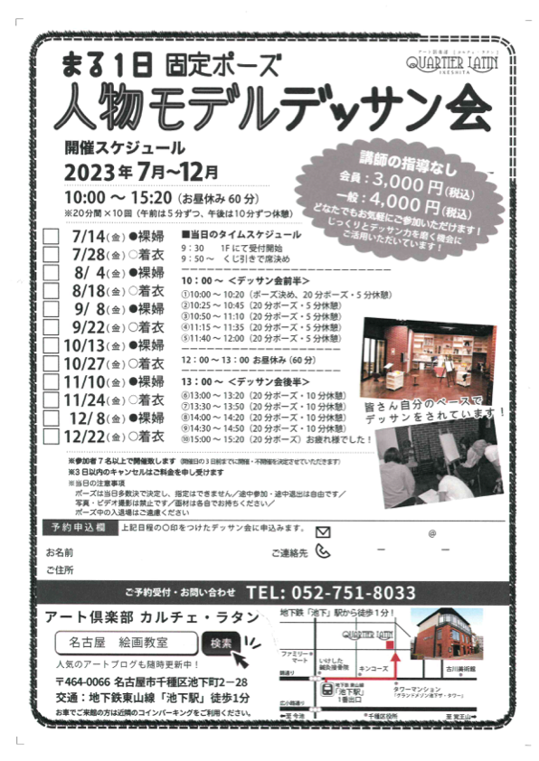 まる1日固定ポーズ 人物モデルデッサン会 2023年7月〜12月