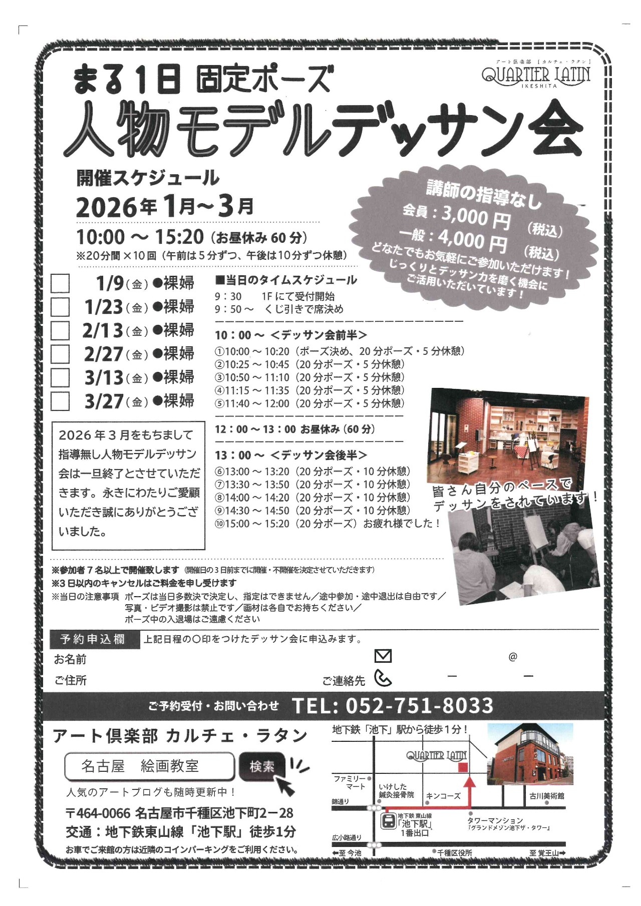 まる1日固定ポーズ 人物モデルデッサン会(裸婦)※指導なし