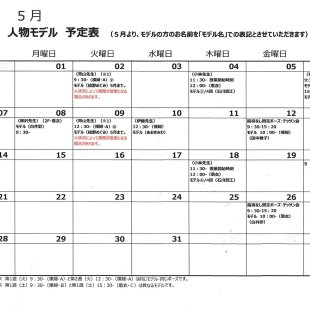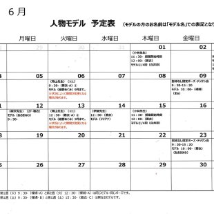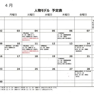 2026年1月の人物モデル教室、指導無しデッサン会のスケジュールを掲示します。 教室出席のご参考になさってください。 ※モデルのお名前は「モデル名」での表記となります。
