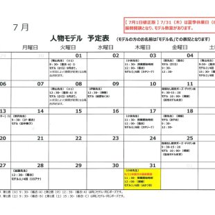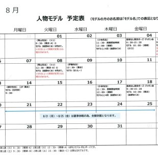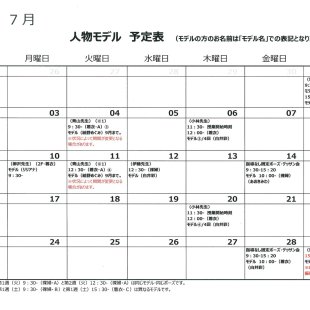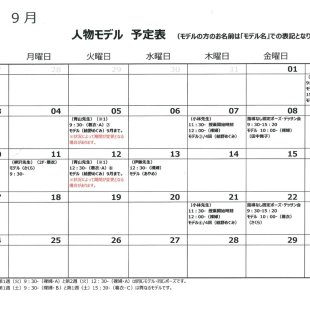 2025年9月の人物モデル教室、指導無しデッサン会のスケジュールを掲示します。 教室出席のご参考になさってください。 ※モデルのお名前は「モデル名」での表記となります。