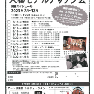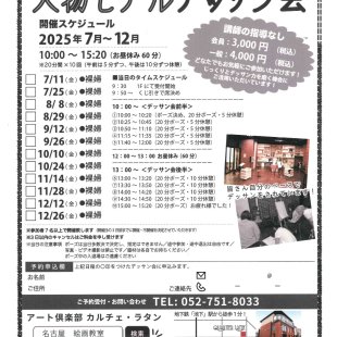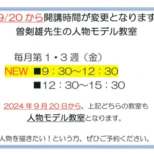 【日本画・木曜日教室の講師変更及び増設について】 下記の通り、2025年11月から変更となります。 ご予約の際は、ご注意くださいますようお願い申し上げます。 ■11月・木曜日 1コマ目(9:30~12:30) ...