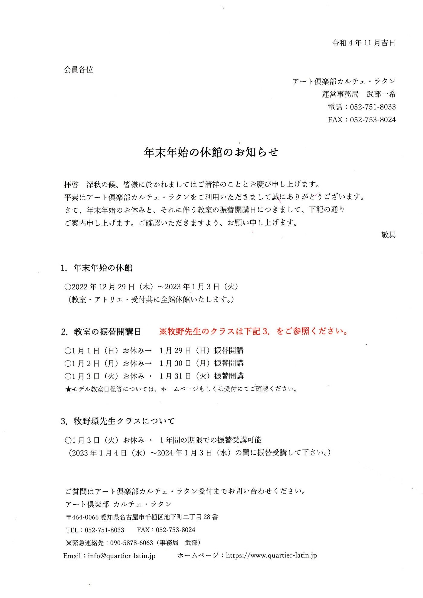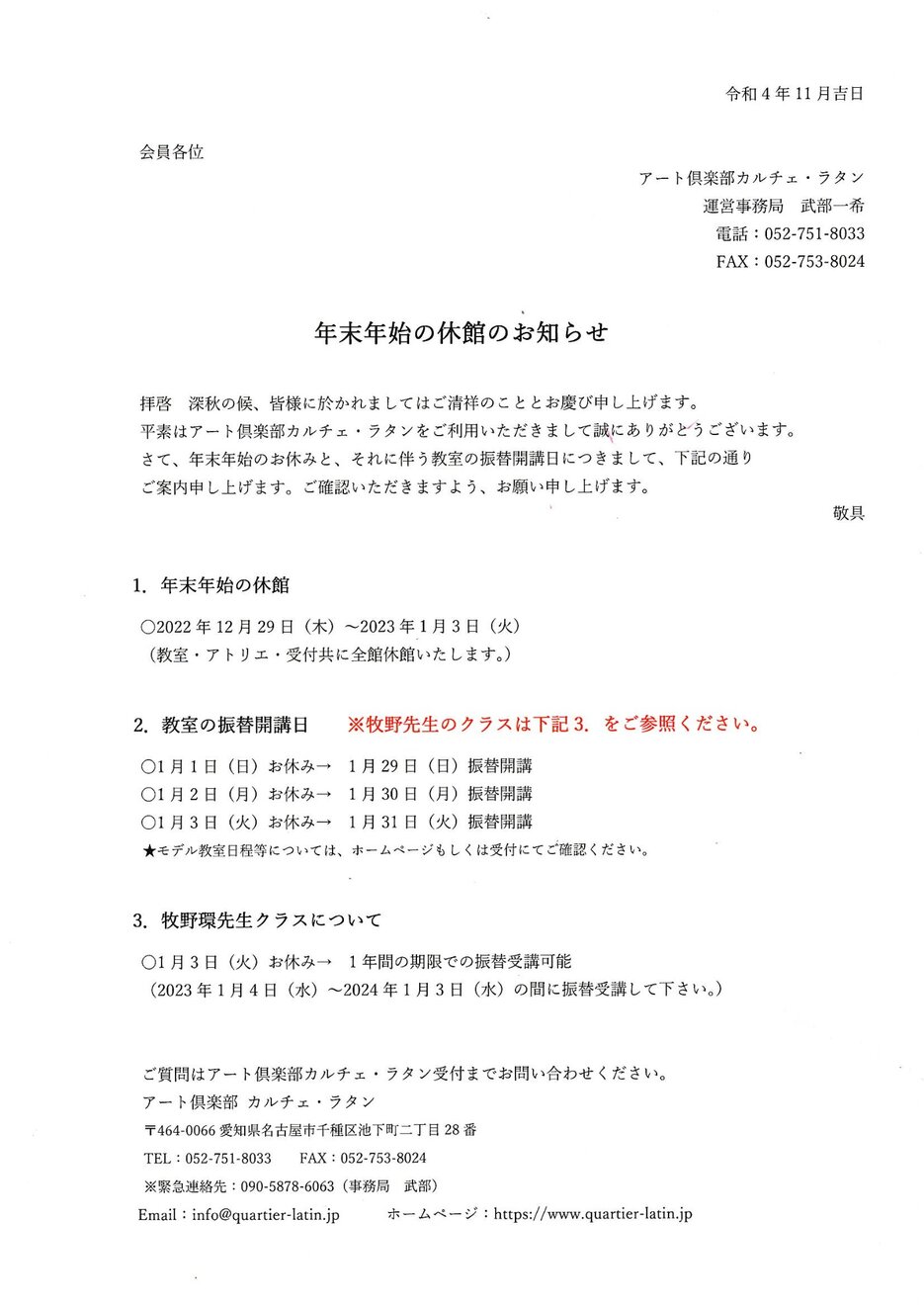 (2023年1月4日(水)~2024年1月3日(水)の間に振替受講して下さい。)