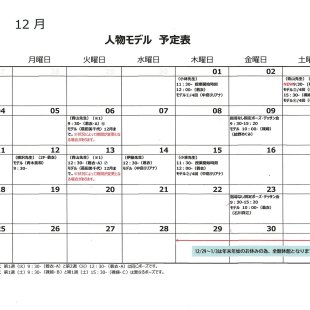2025年7月~12月 まる1日固定ポーズ 人物モデルデッサン会(指導なし)のお知らせ