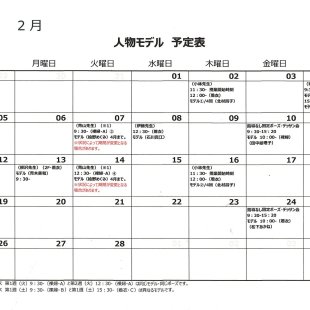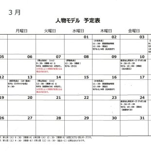 2025年6月の人物モデル教室、指導なしデッサン会のスケジュールを掲示します。 教室出席のご参考になさってください。 ※モデルの方のお名前は「モデル名」での表記となります。