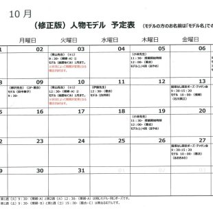 【人物モデル予定表・2024年10月18日修正版】 2024年10月の人物モデル教室、指導なしデッサン会のスケジュールに変更があります。 ●10/20(日)9:30-、12:30-、15:30-(曽先生クラス)のモデルは、あおきみわ➡...