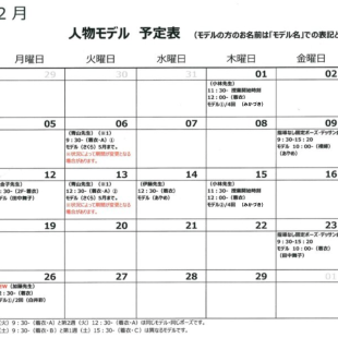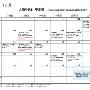 2024年12月の人物モデル教室、指導なしデッサン会スケジュールを掲示します。 教室出席のご参考になさってください。 ※牧野先生の人物モデル教室につきまして、2024年12月は、12/24(第4週の火曜日)に開講いたし...