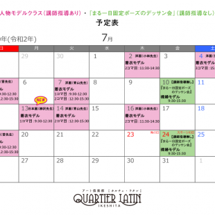2023年12月の人物モデル教室、指導なしデッサン会スケジュールを掲示します。 教室出席の参考にされてください。 ※モデルの方のお名前は「モデル名」での表記となります。