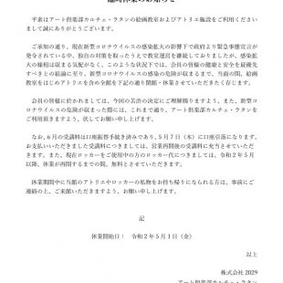 令和4年 お盆休みのお知らせ 1.お盆休みによる休館 2022年8月11日(木)~16日(火) (教室・アトリエ・受付共に全館休館いたします) 2. 教室の振替開講日 ※曽先生のクラスは下記3.をご参照くださ...