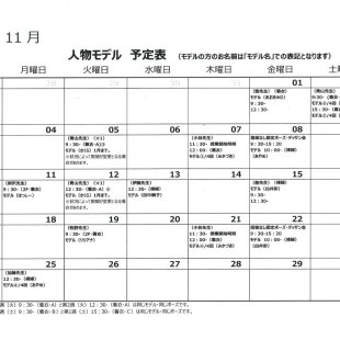2025年11月の人物モデル教室、指導無しデッサン会のスケジュールを掲示します。 教室出席のご参考になさってください。 ※モデルのお名前は「モデル名」での表記となります。