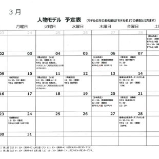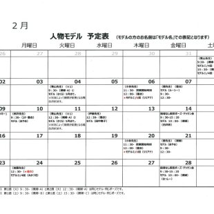 2026年1月の人物モデル教室、指導無しデッサン会のスケジュールを掲示します。 教室出席のご参考になさってください。 ※モデルのお名前は「モデル名」での表記となります。