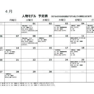 2025年5月の人物モデル教室、指導なしデッサン会のスケジュールを掲示します。 教室出席のご参考になさってください。 ※モデルの方のお名前は「モデル名」での表記となります。